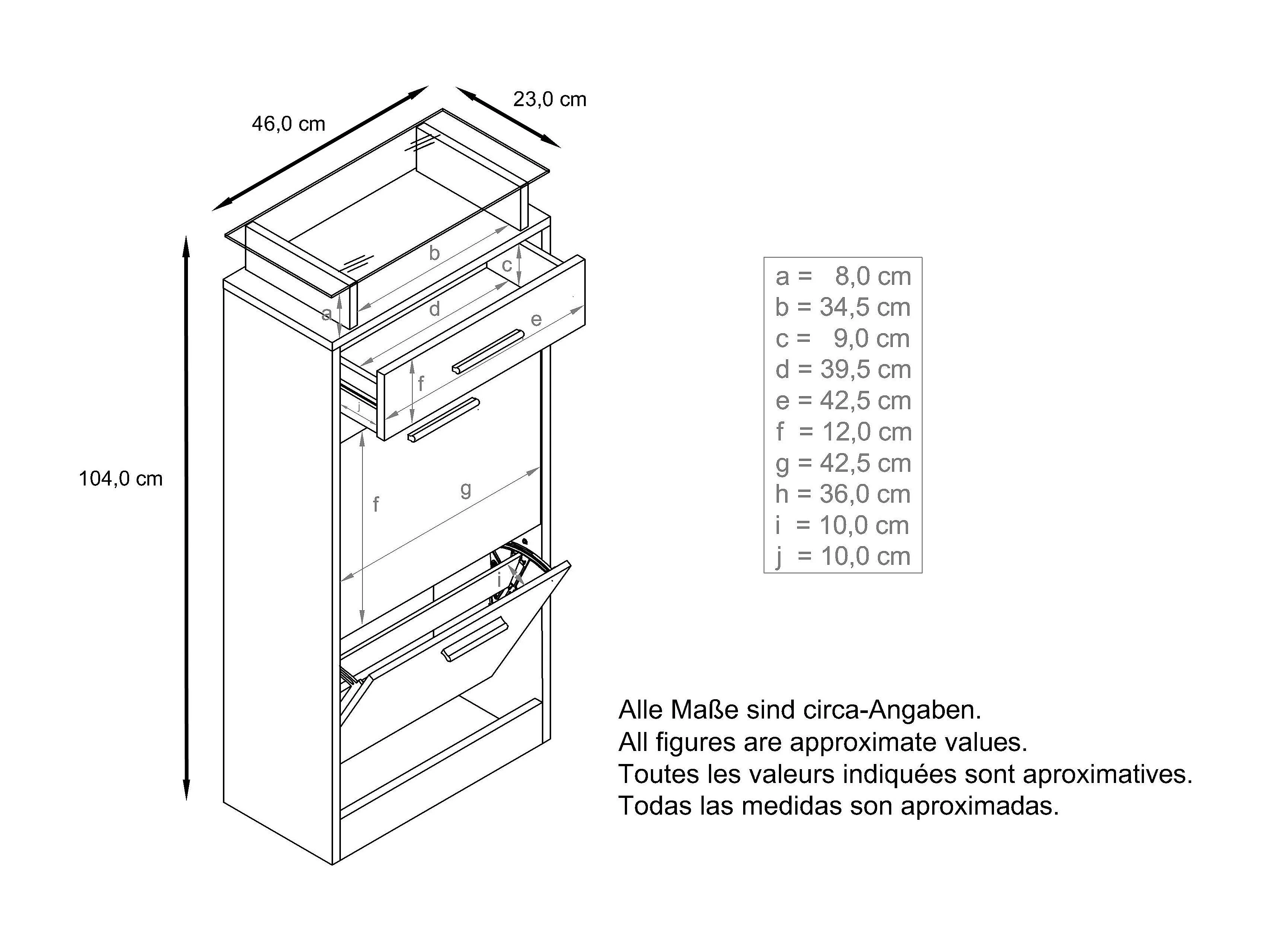 Meuble à Chaussures Lavia V2, Range-Chaussures pour 12 Paires avec 3 Abattants et Étagère en Verre, blanc mat/blanc haute brillance (46 x 128 x 23 cm)