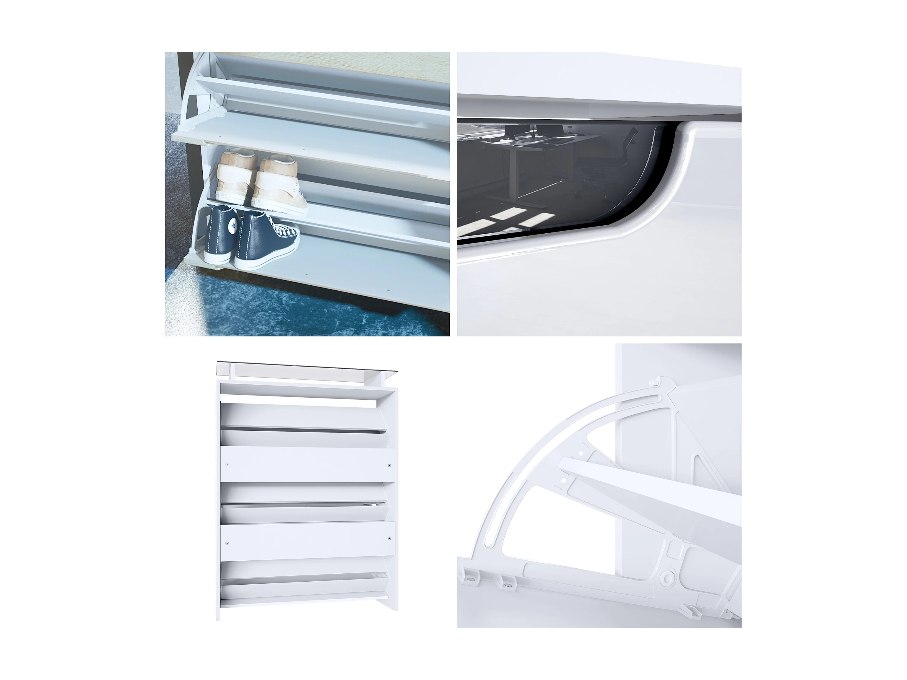 Meuble chaussures Annie pour 16 paires de chaussures avec 2 clapets et 1 tablette en verre, Blanc mat/Mûre haute brillance (89 x 96 x 23 cm)