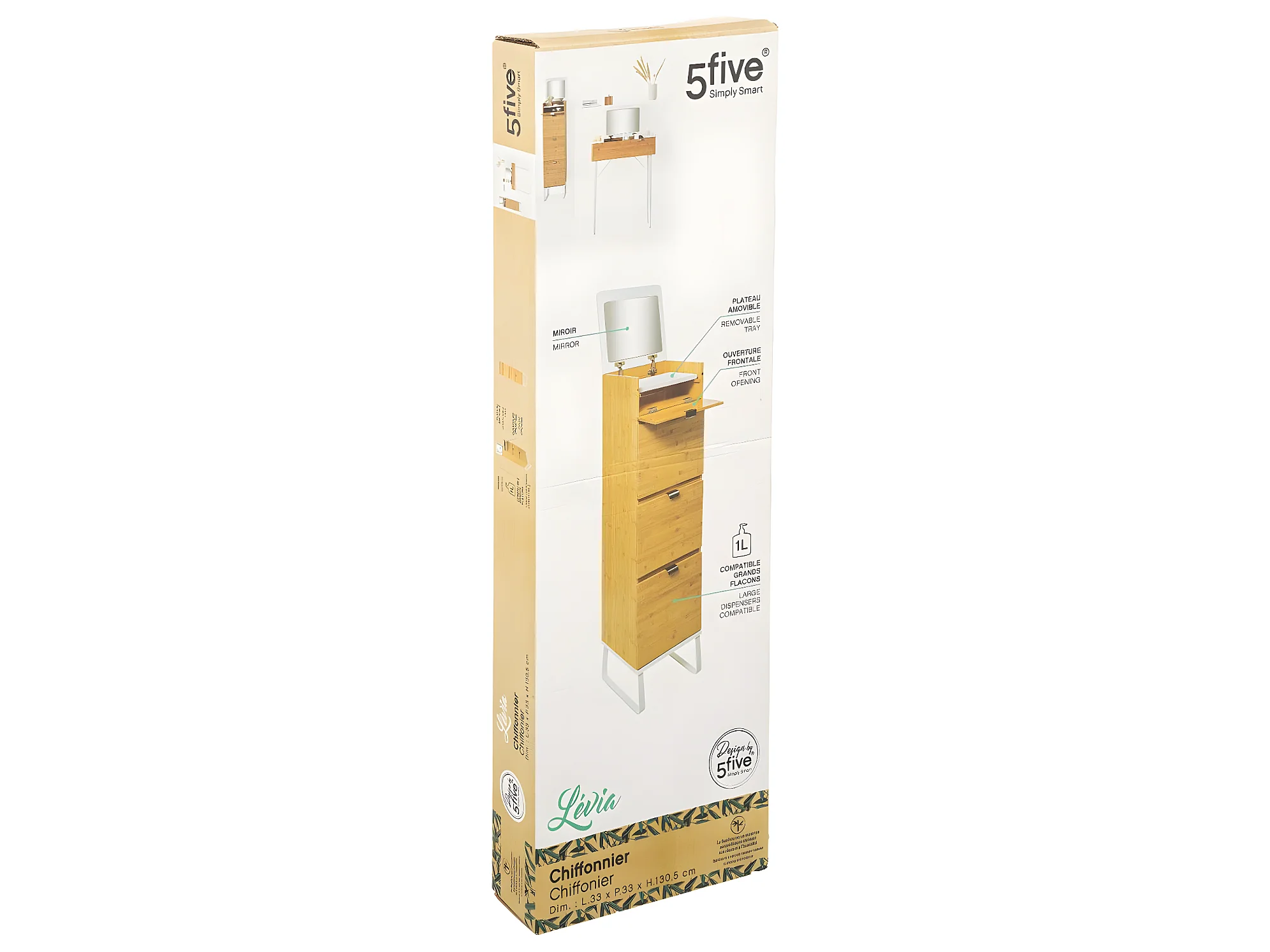 Meuble en Bambou et Métal Blanc avec Miroir et Tablette amovible H 130.50 cm