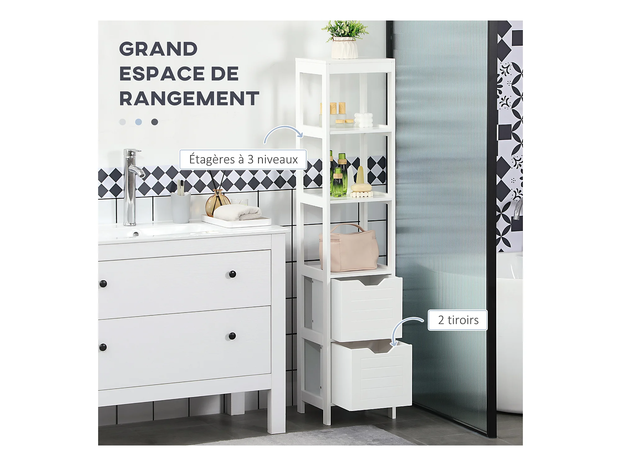 Meuble colonne rangement salle de bain dim. 30L x 30l x 144H cm 2 tiroirs 3 étagères MDF blanc