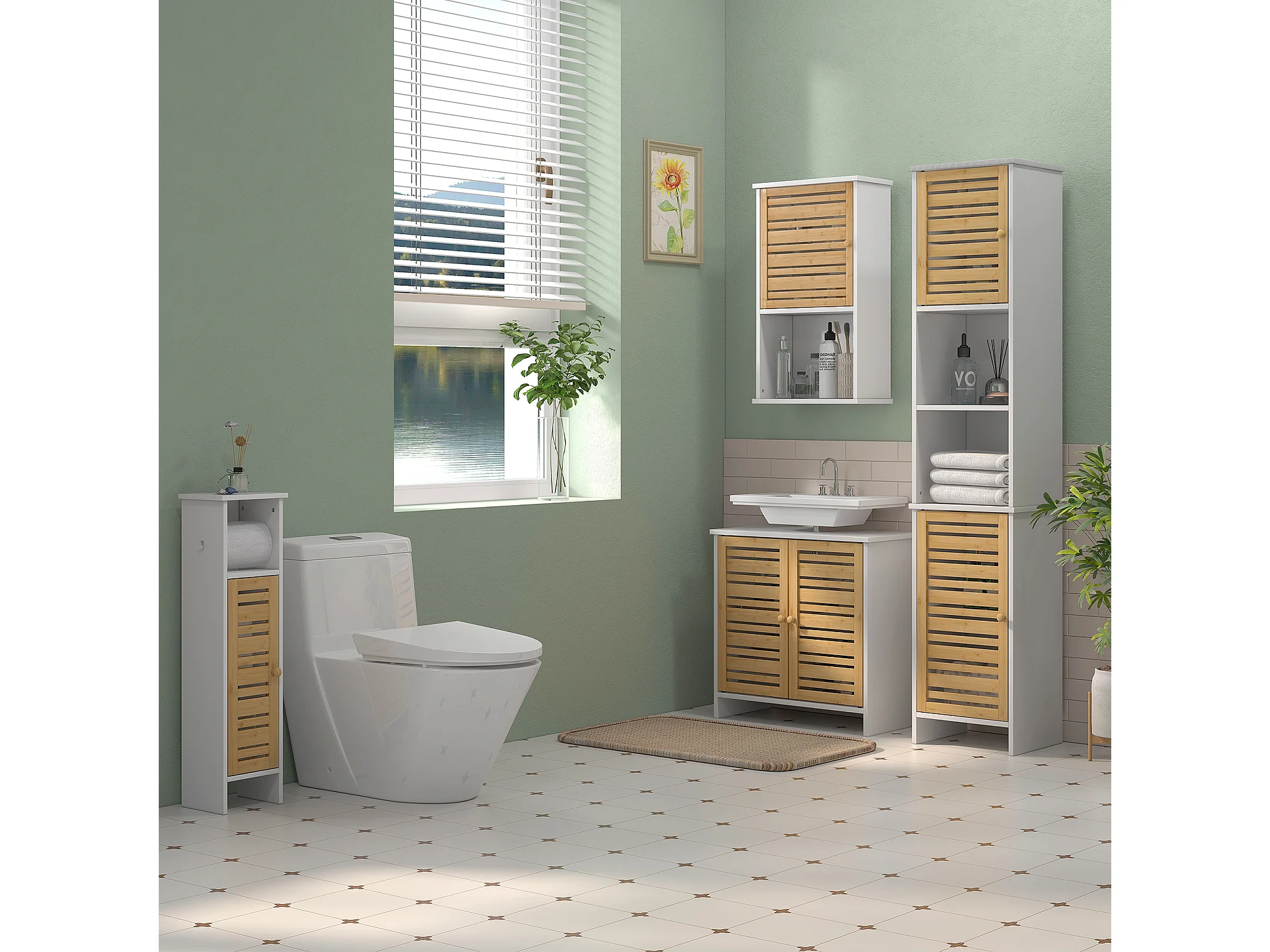 Meuble colonne salle de bain style cosy chic - 2 portes, 2 étagères, 2 niches - dim. 35L x 30l x 170H cm - blanc bambou