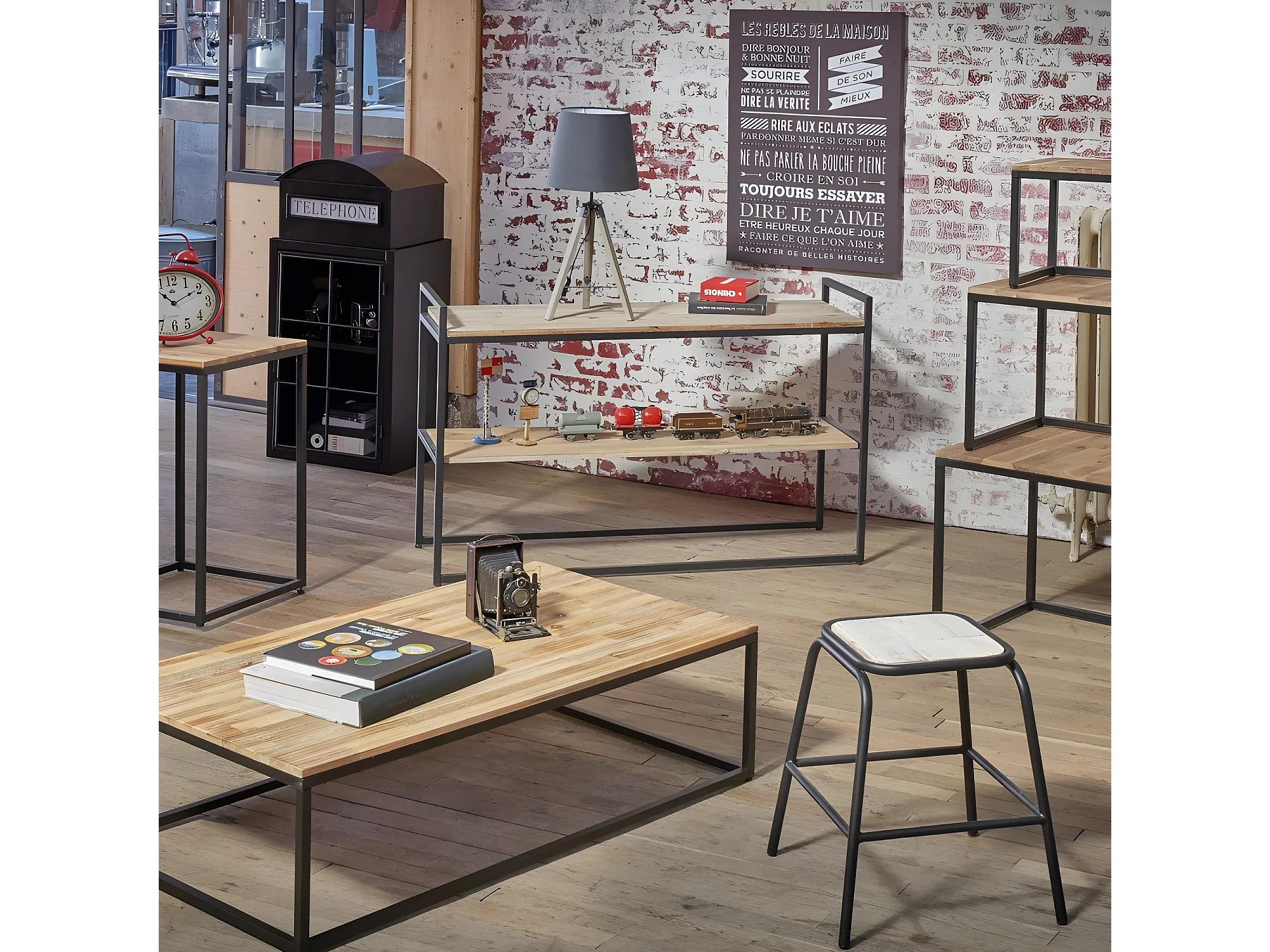 Meuble Console en Bois d'Acacia et Métal Noir H 75 cm