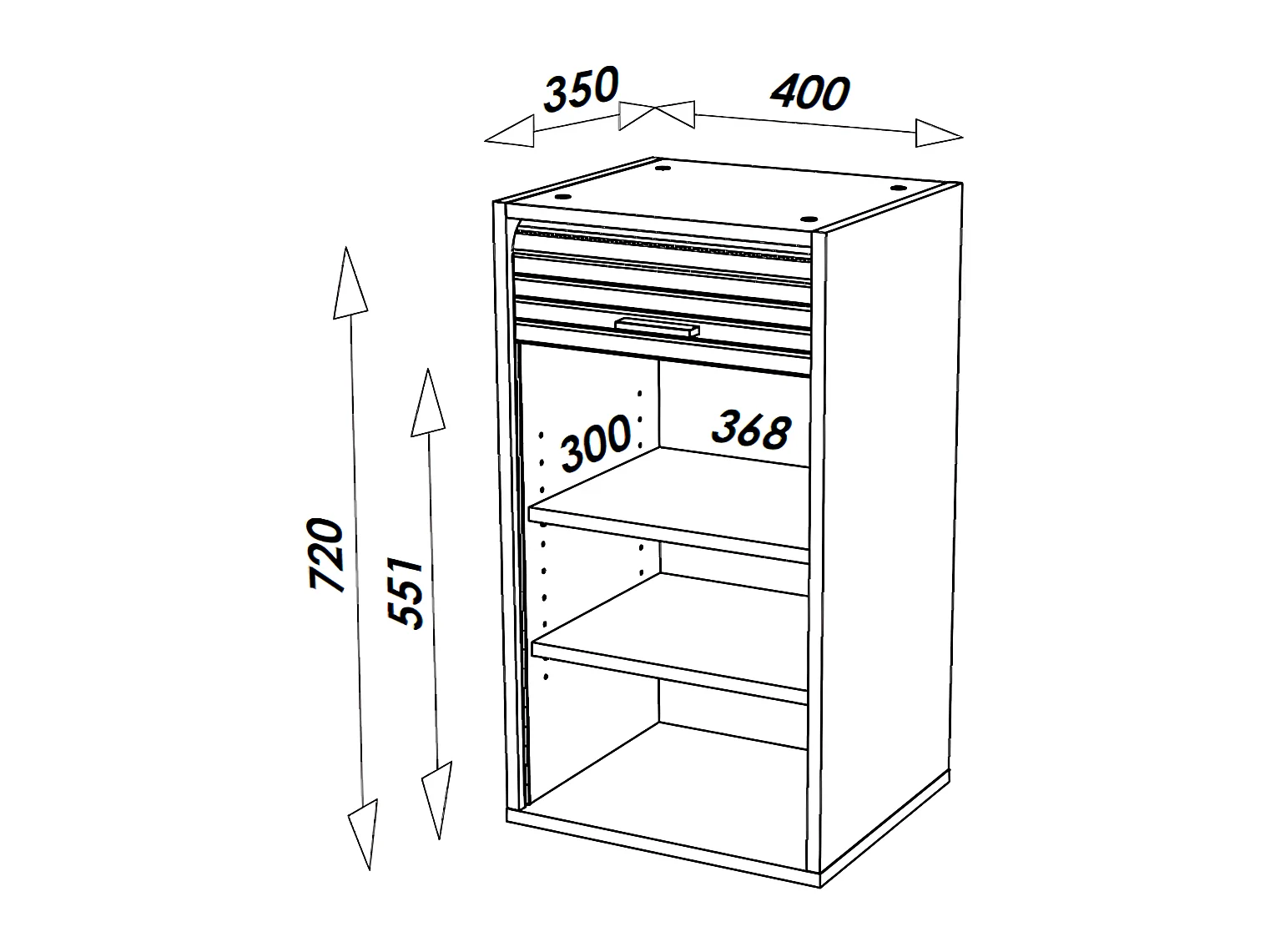 Meuble Cuisine Blanc Rideau Chêne Noir ou Alu 2 Etagères Larg 40 H 72 P 35 cm - Coloris: Aluminium