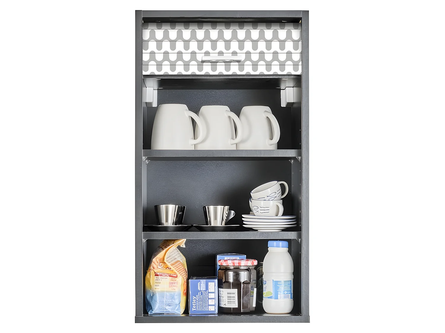 Meuble Cuisine Noir 40x72 Face Imprimée - Coloris Rideau: Vagues Grises 810
