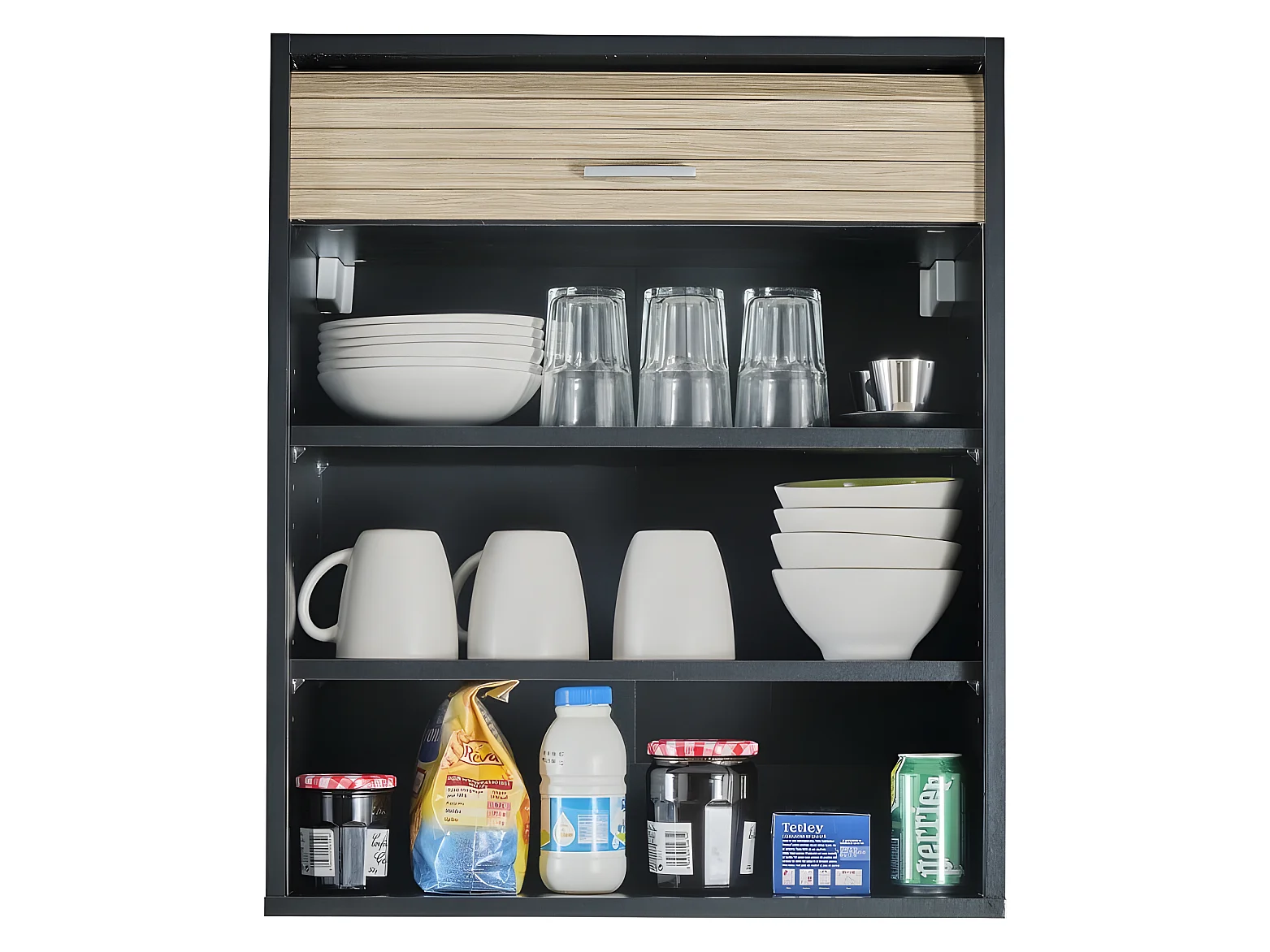 Meuble Cuisine Noir Rideau Chêne Blanc ou Alu 2 Etagères L 60 H 72 P 35 cm - Coloris: Chêne Naturel