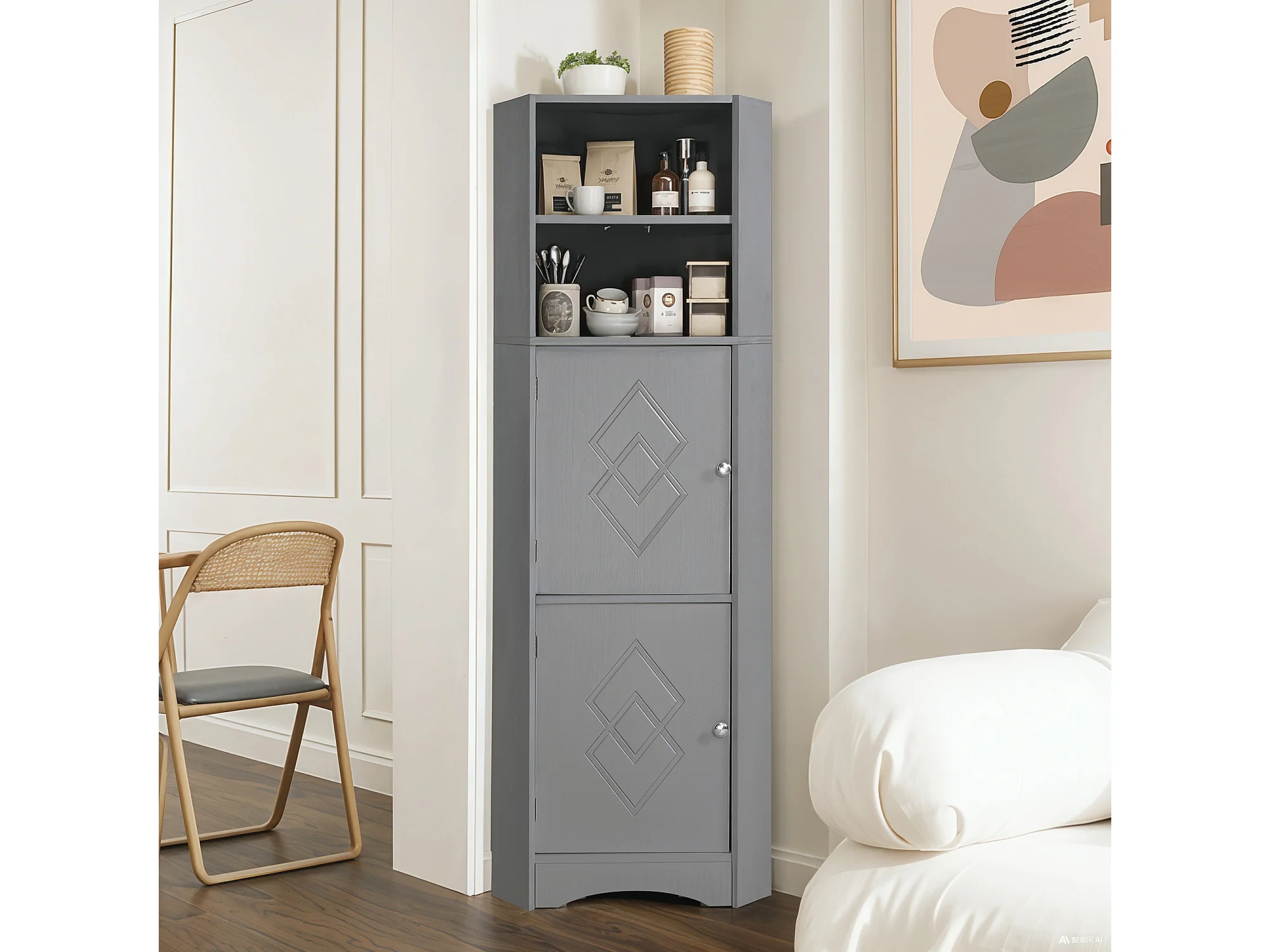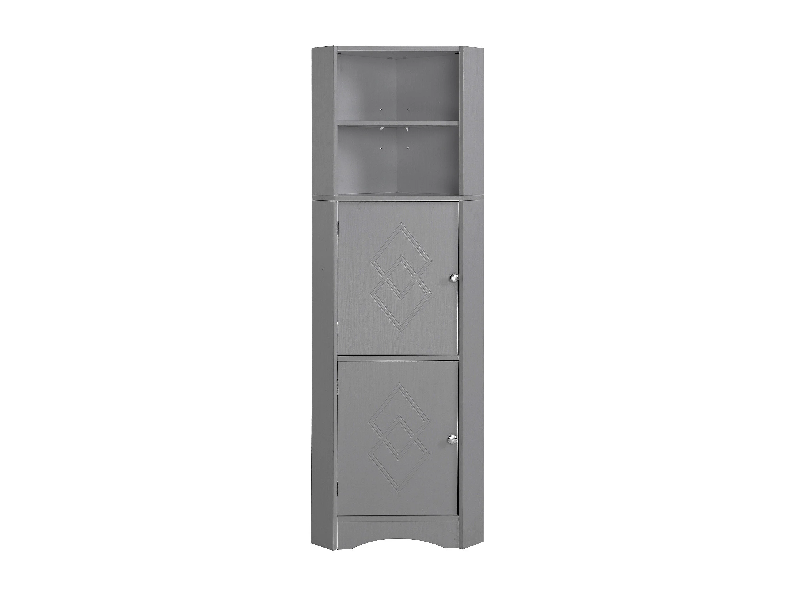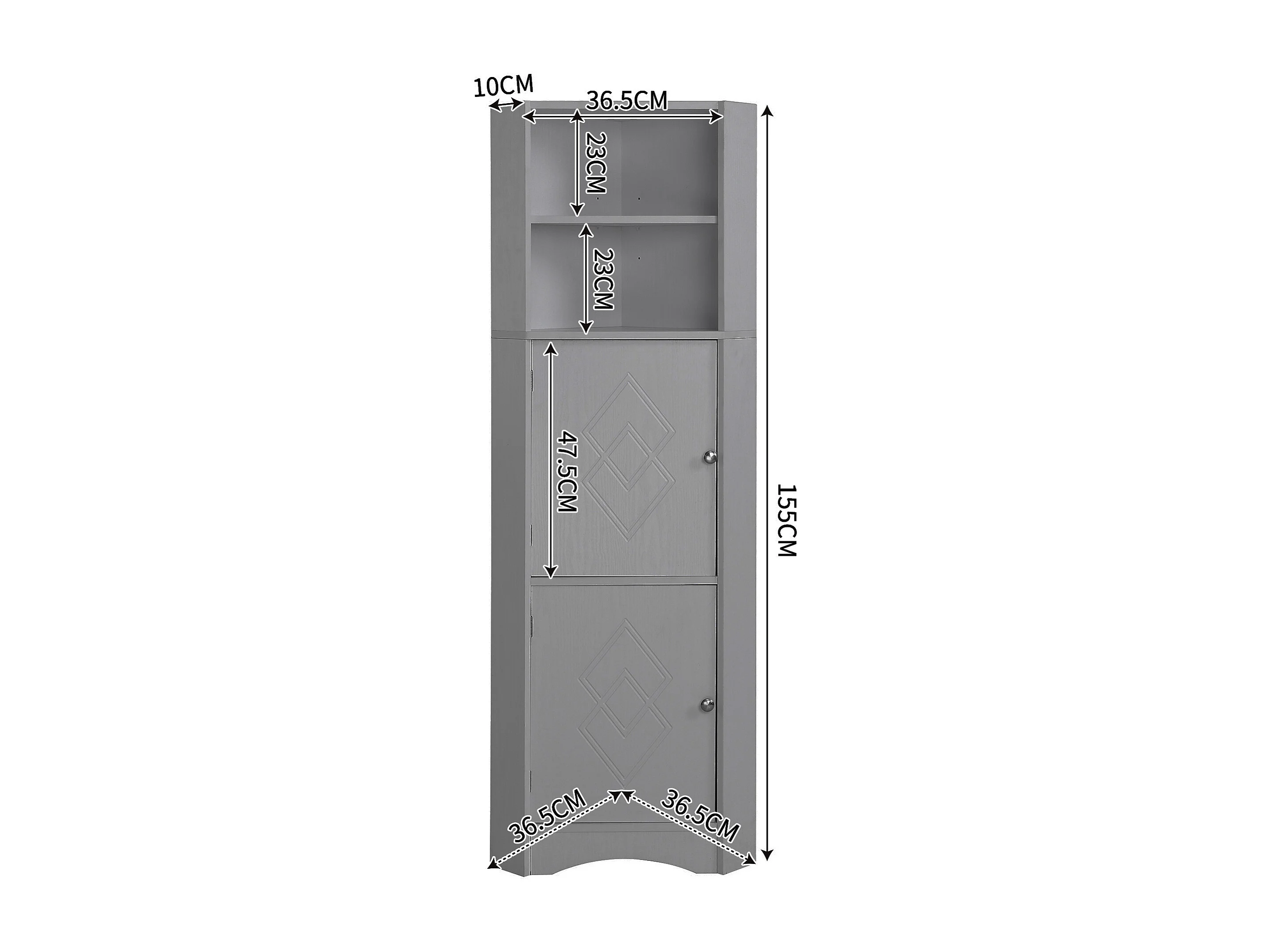 Meuble d'angle de salle de bain, avec 2 étagères, compartiment ouvert et étagère réglable, design moderne, MDF, gris (36.5x36.5x155 cm)