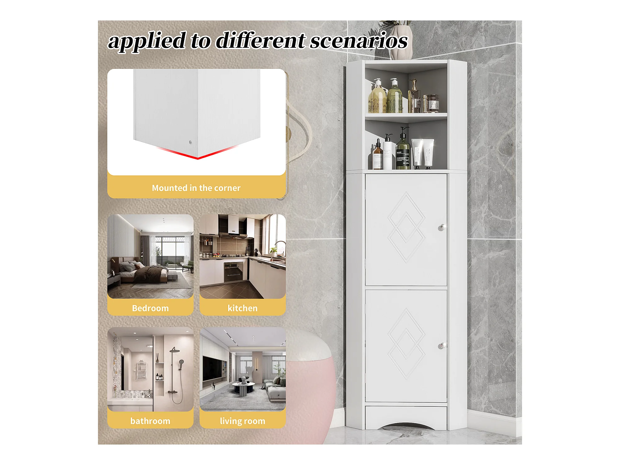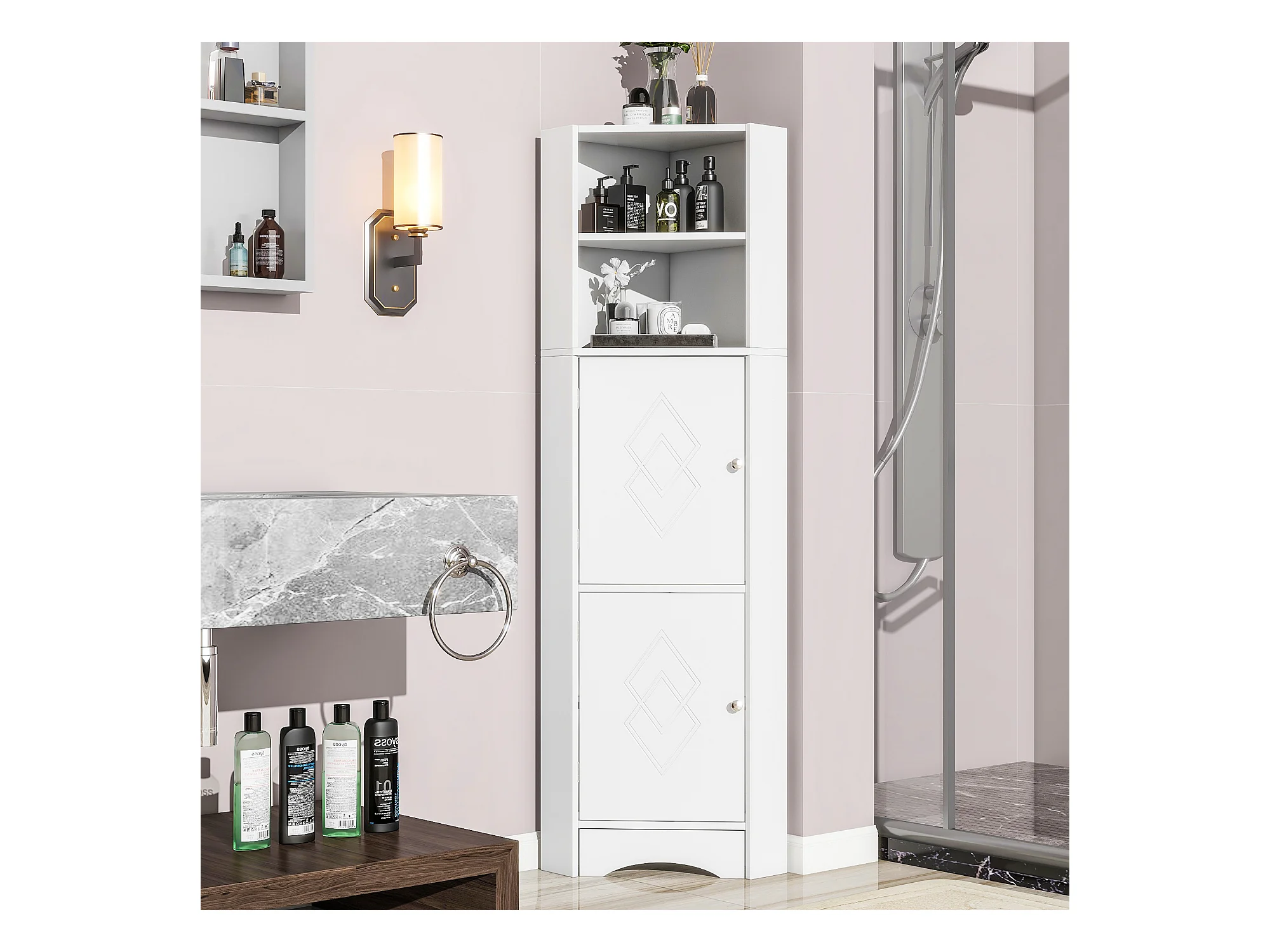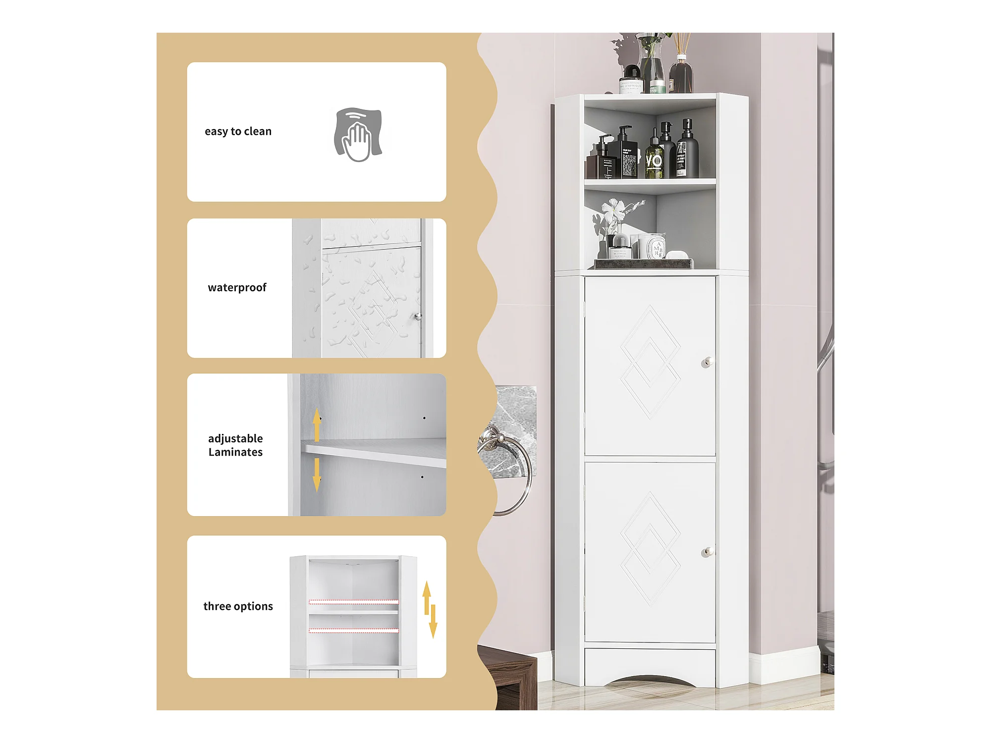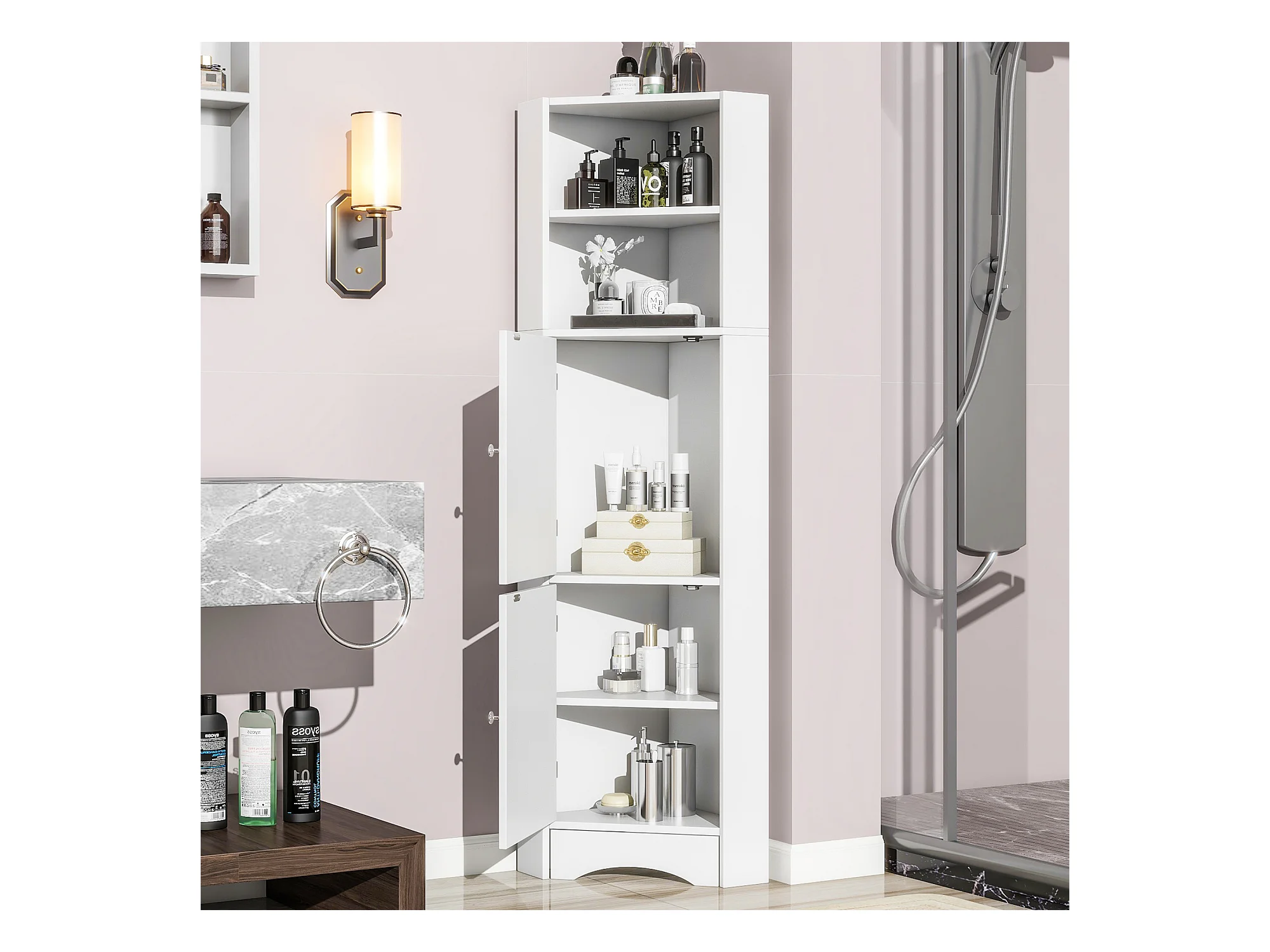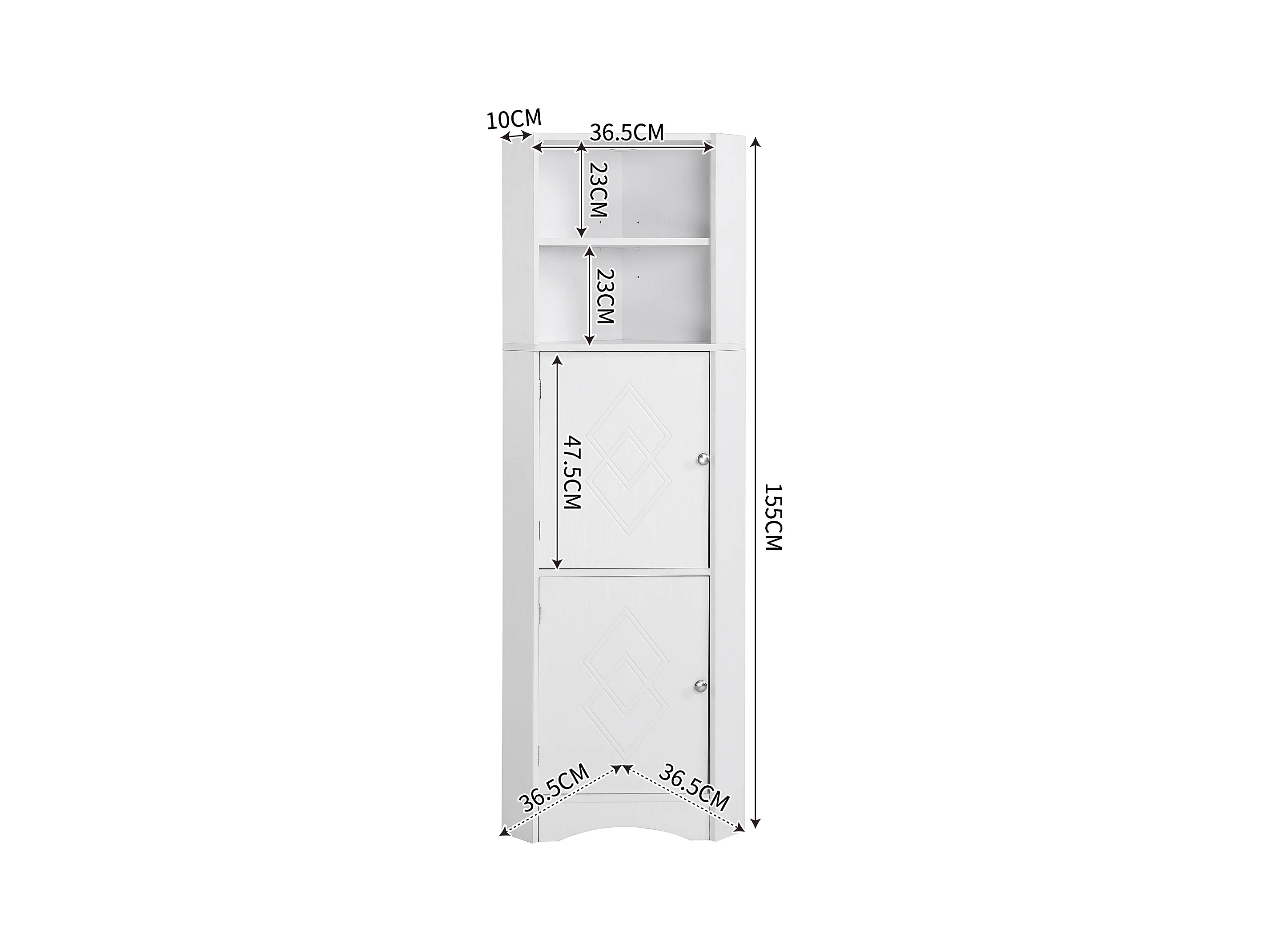 Meuble d'angle de salle de bain, avec 2 étagères, design moderne, MDF, blanc (36.5x36.5x155 cm)