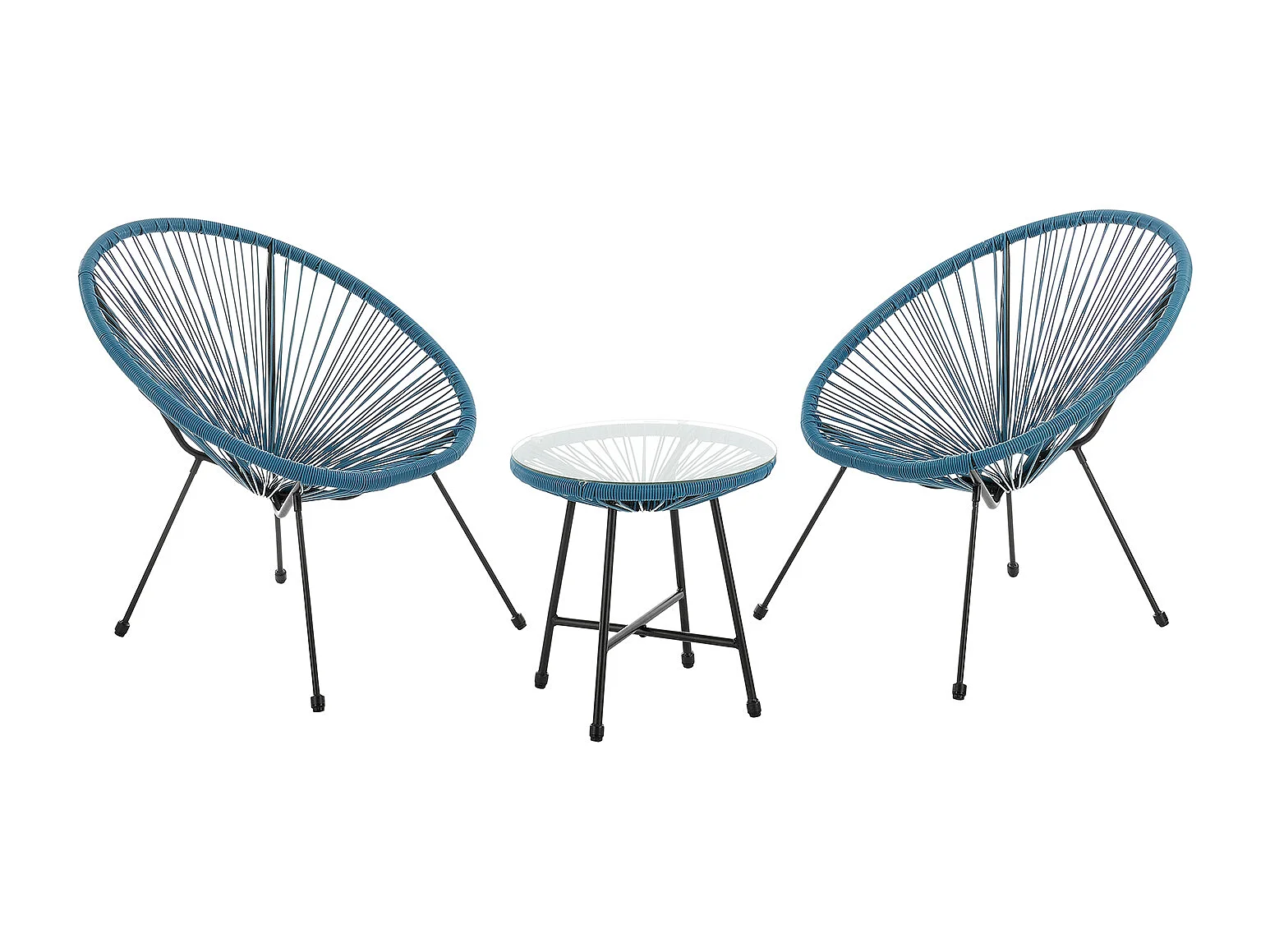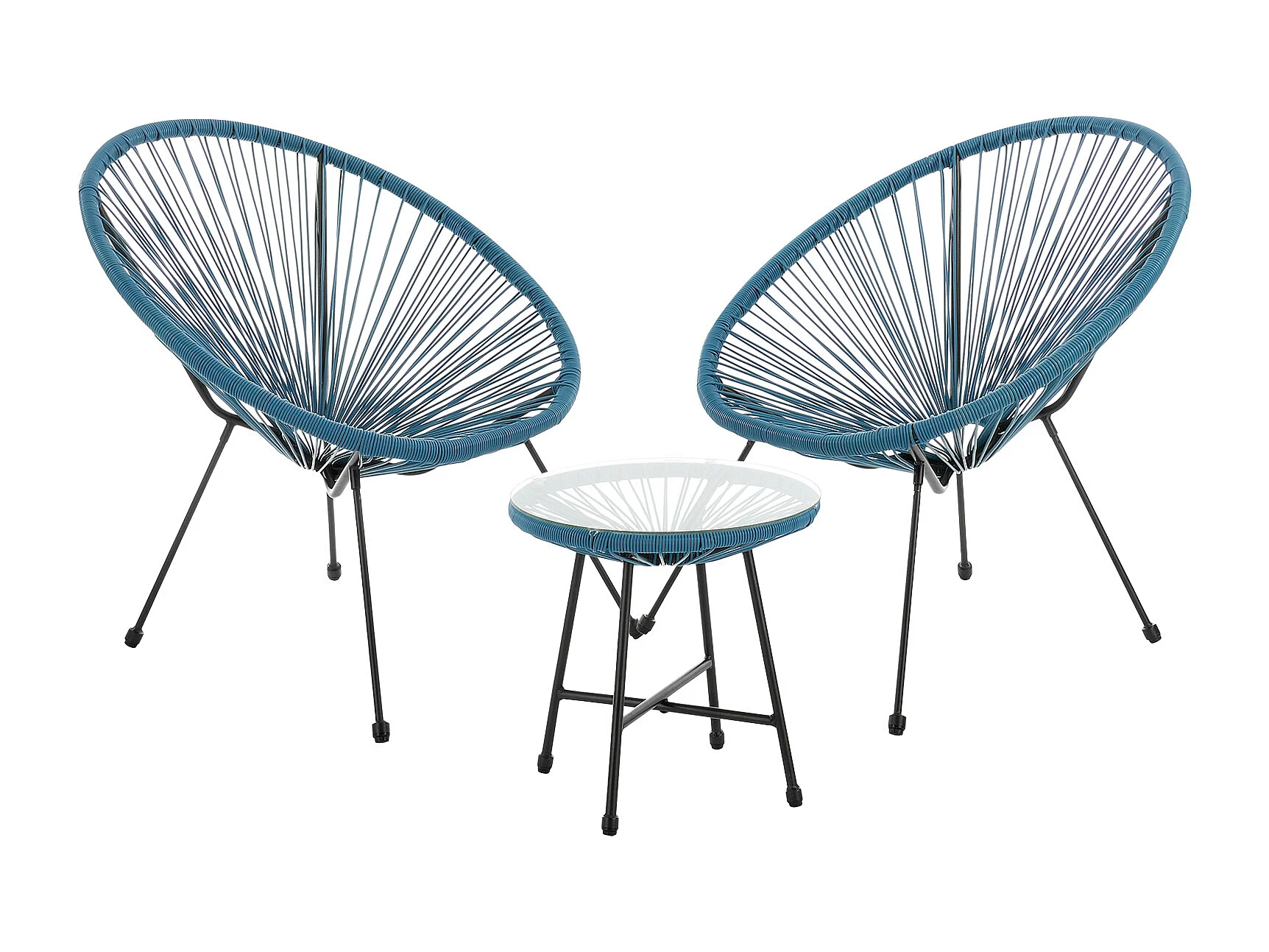 Salon de jardin 2 fauteuils ronds et table basse bleu ACAPULCO