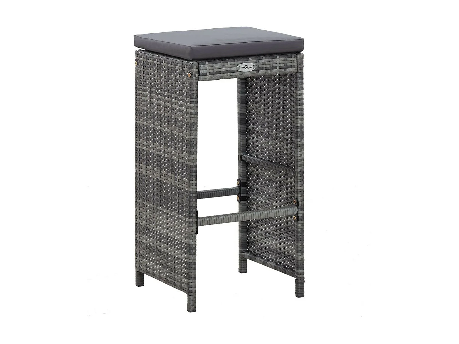 Meuble de bar de jardin 7 pcs et coussins Résine tressée Gris