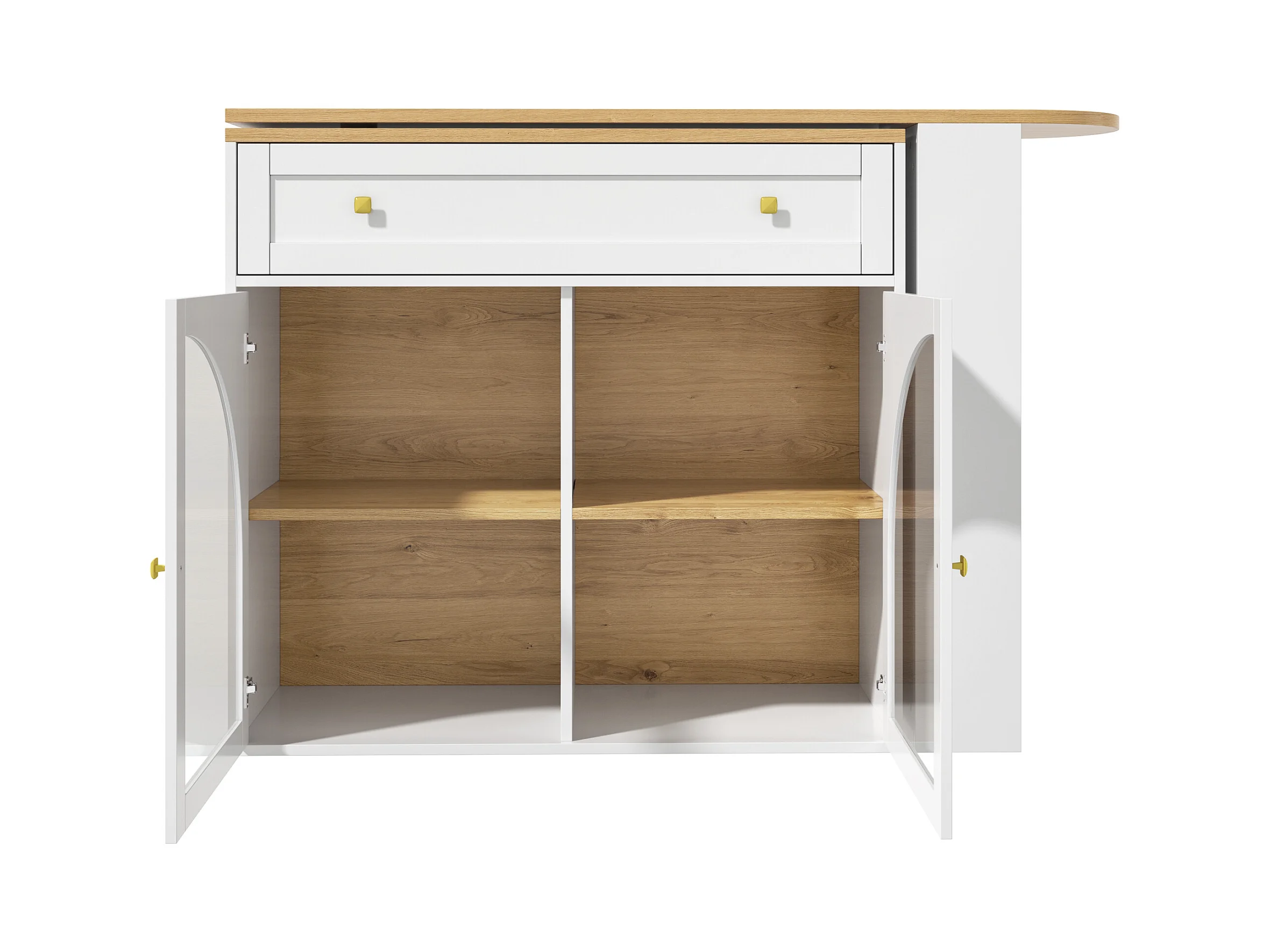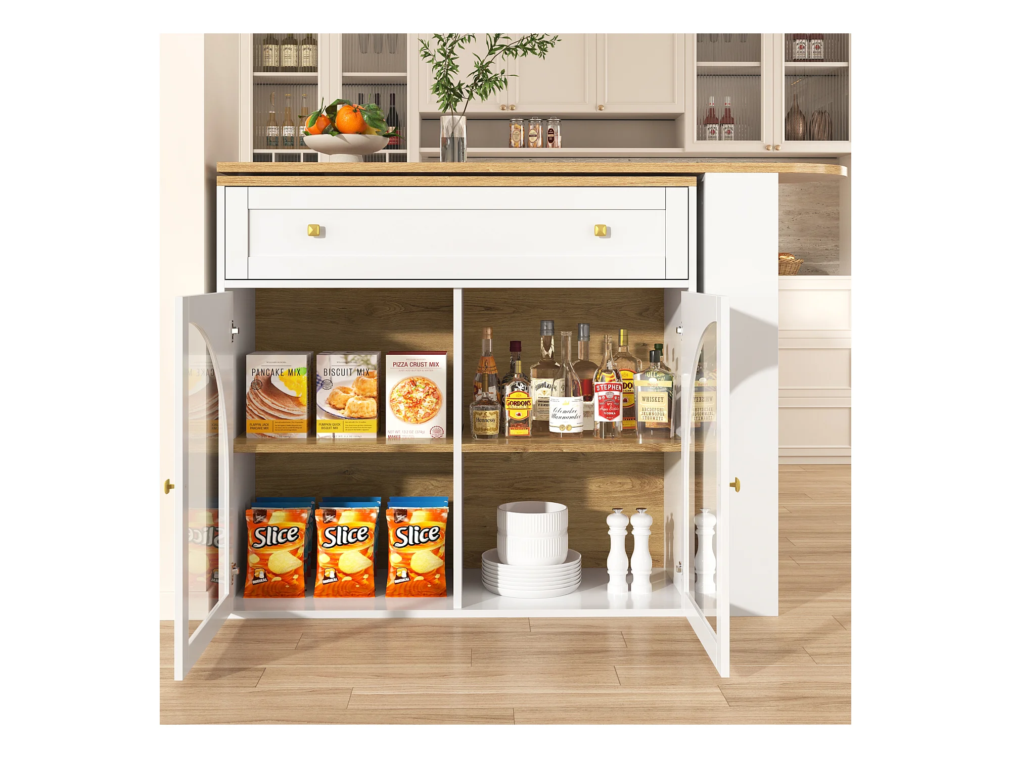 Meuble de bar extensible - 138-204 x 39 x 104 cm - table à manger rotative à 360 °- avec 2 portes + 1 tiroir - MDF - blanc
