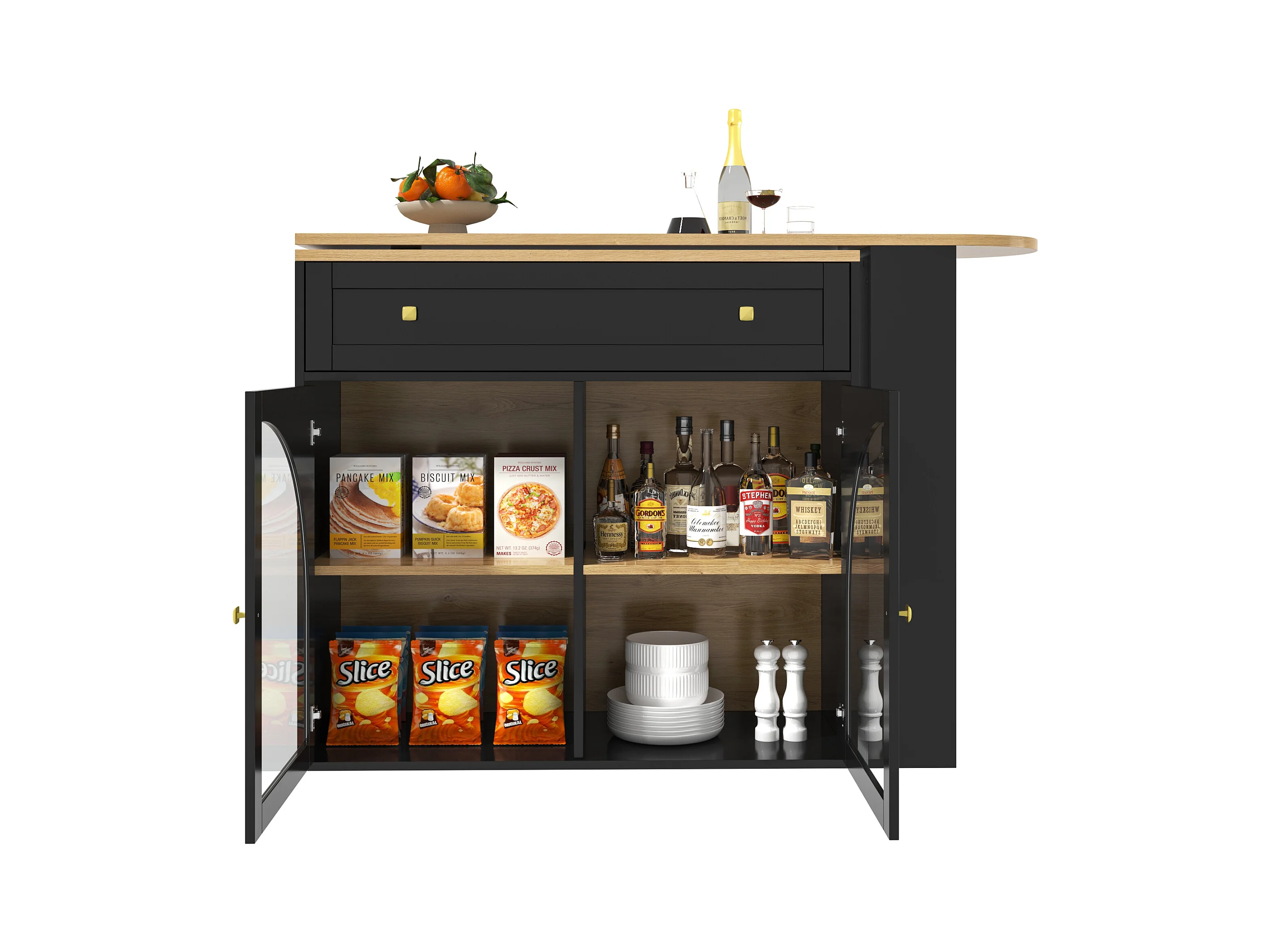 Meuble de bar extensible - 138-204 x 39 x 104 cm - table à manger rotative à 360 °- avec 2 portes + 2 tiroirs - MDF - noir