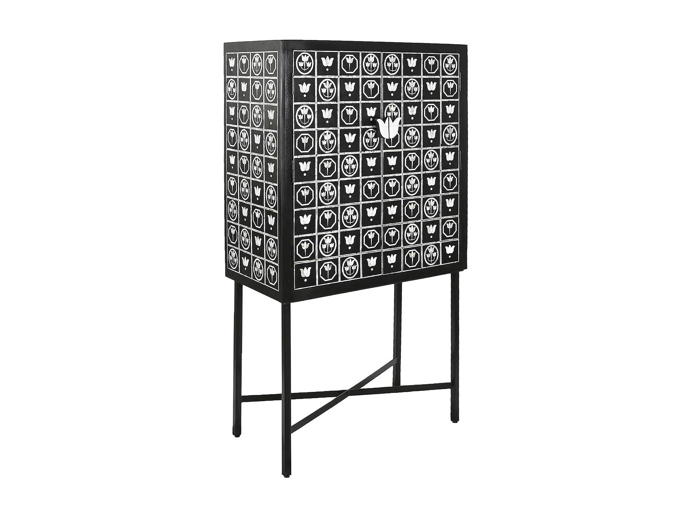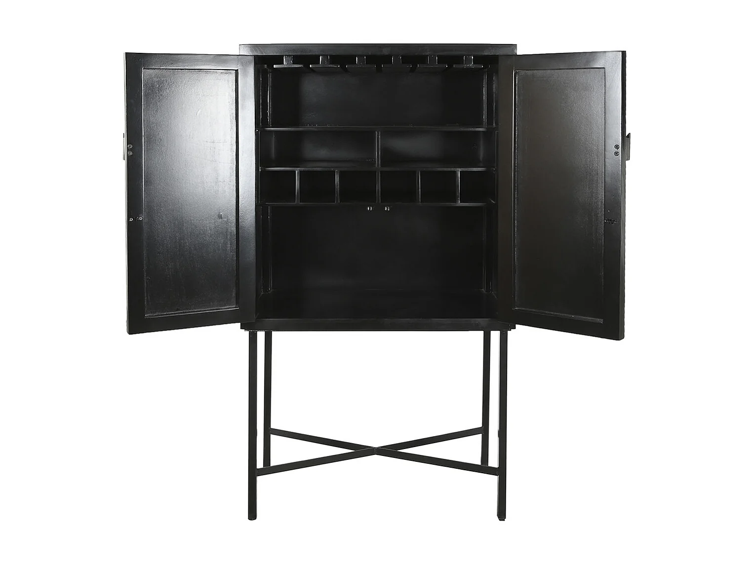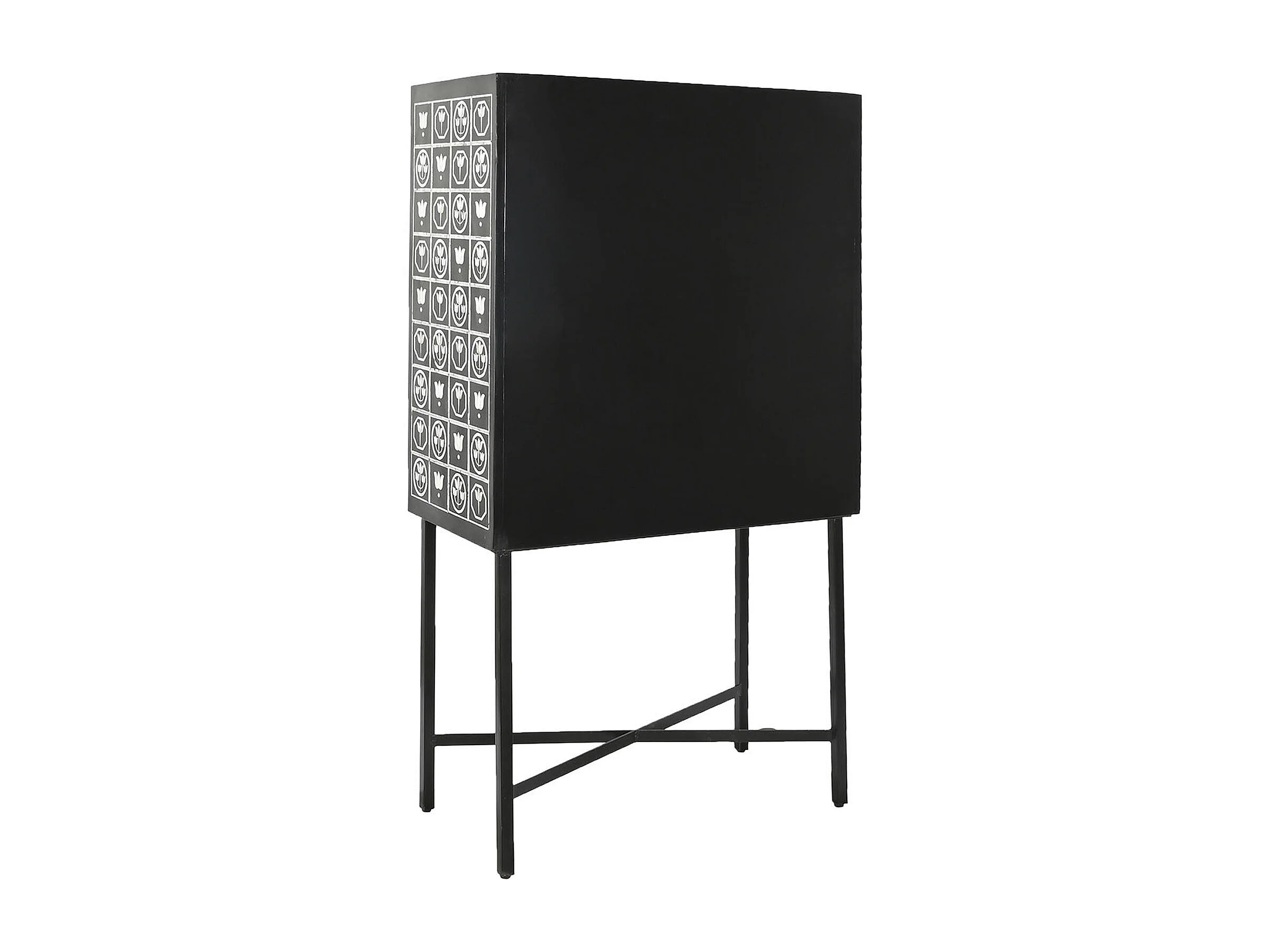 Meuble de bar, meuble de rangement avec 2 portes en métal noir et blanc - longueur 80 x profondeur 40 x Hauteur 153 cm