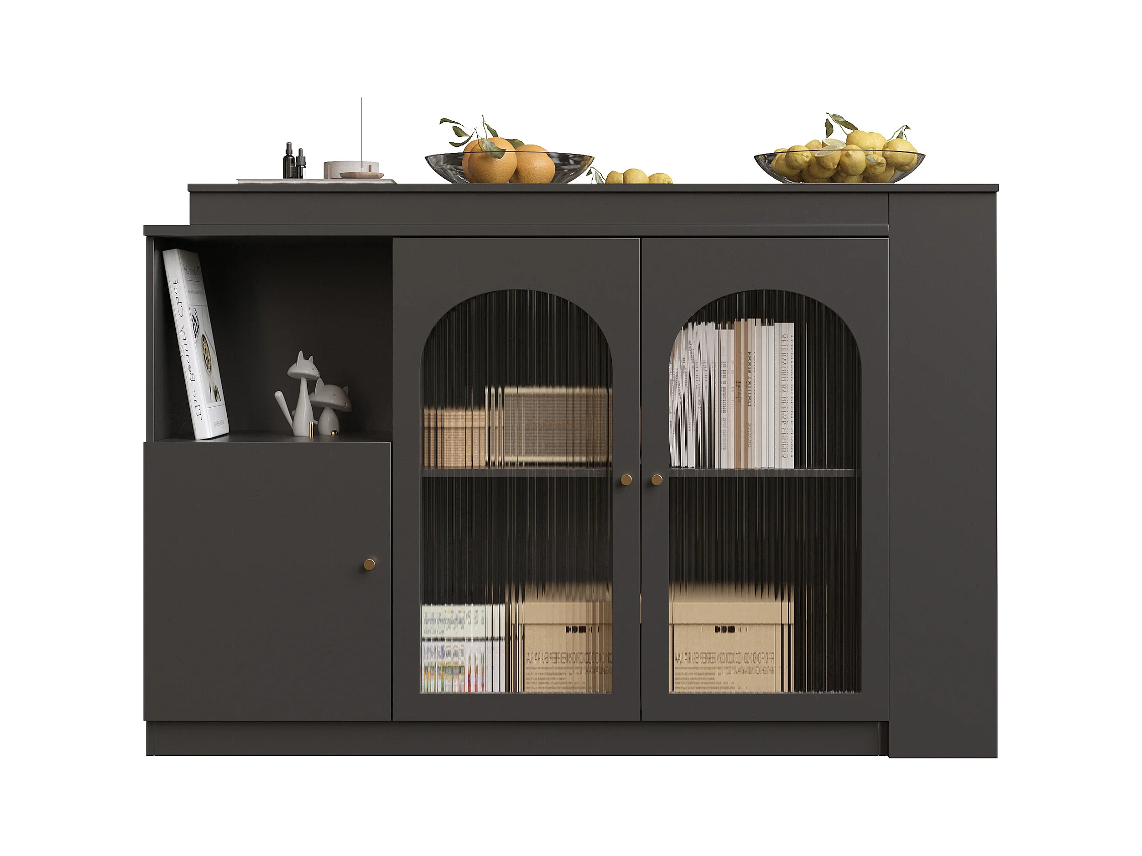 Meuble de bar rotatif - 200 x 40 x 103 cm - avec 3 portes et 4 rangements ouverts - porte vitrée - noir