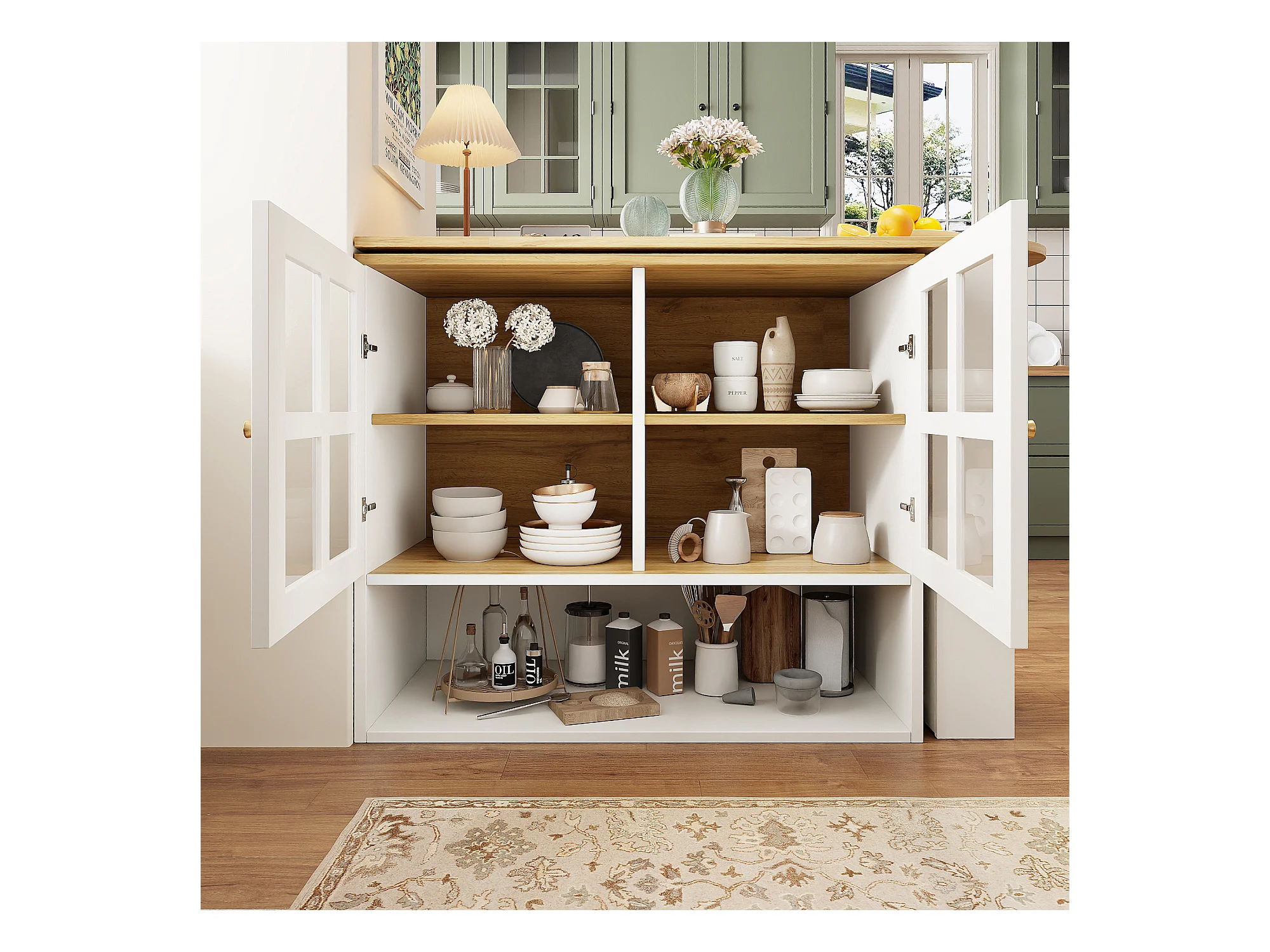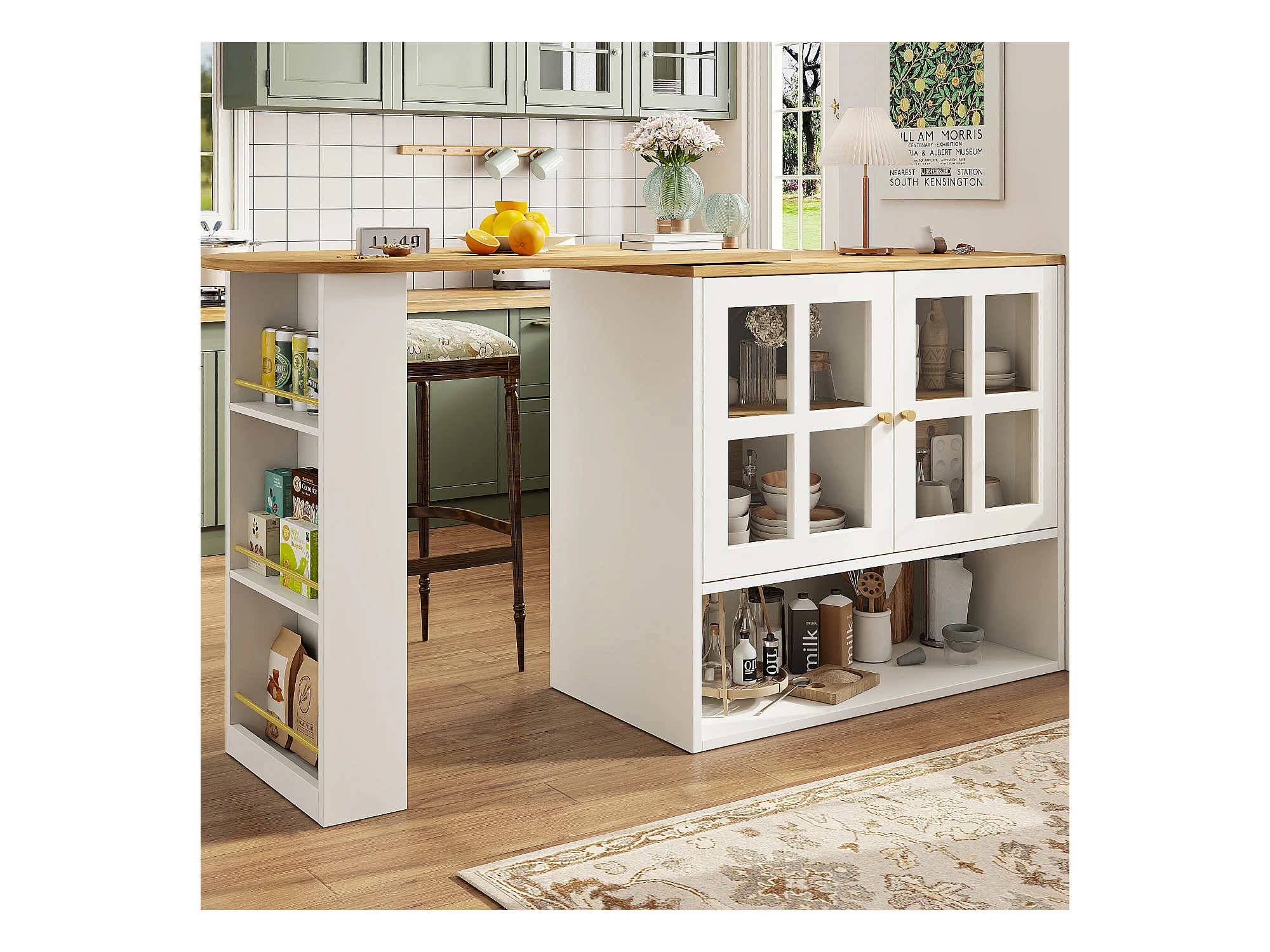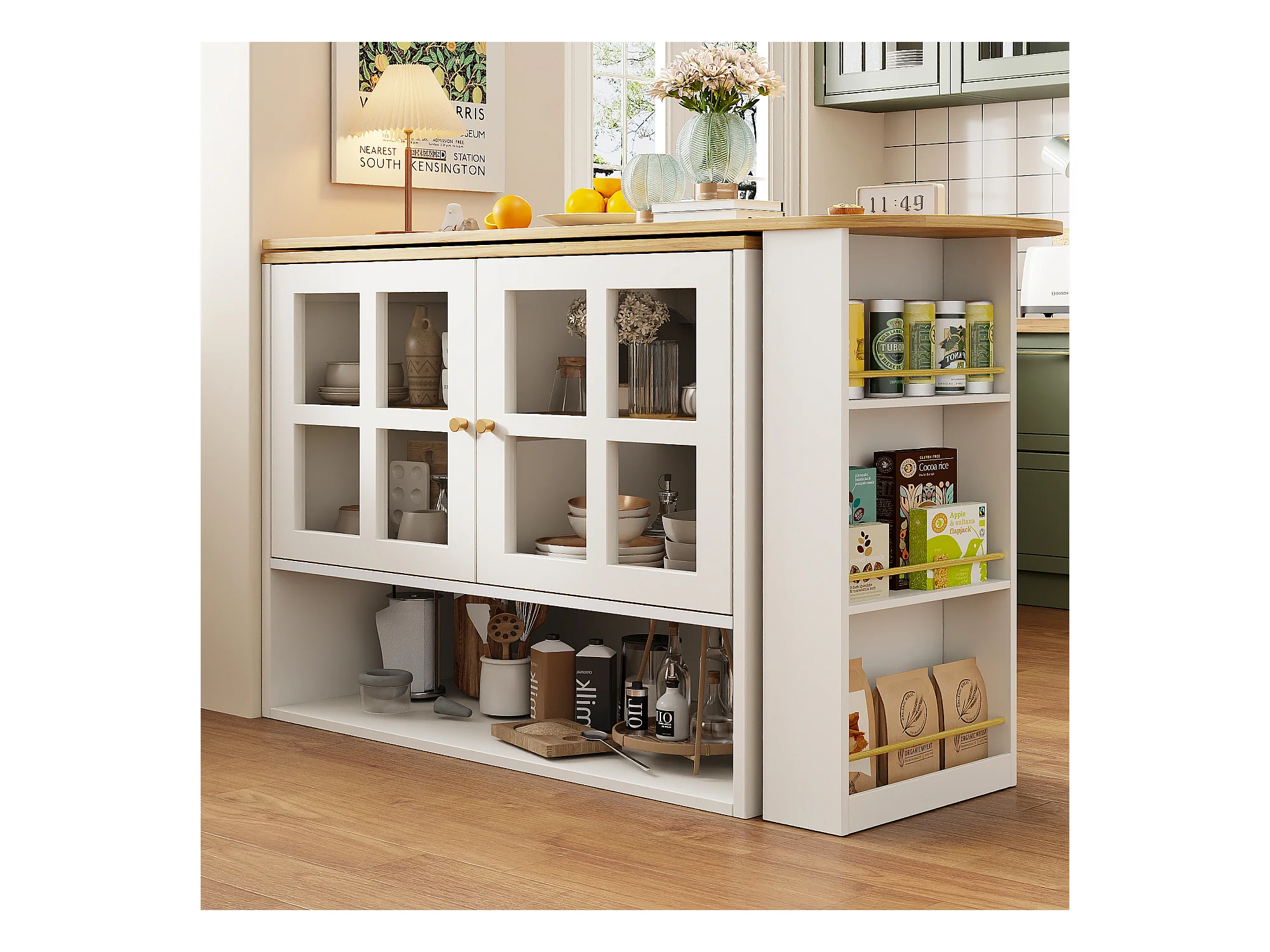 Meuble de bar rotatif - 204 x 39 x 102. 5 cm - avec 4 rangements + 2 portes - MDF - blanc