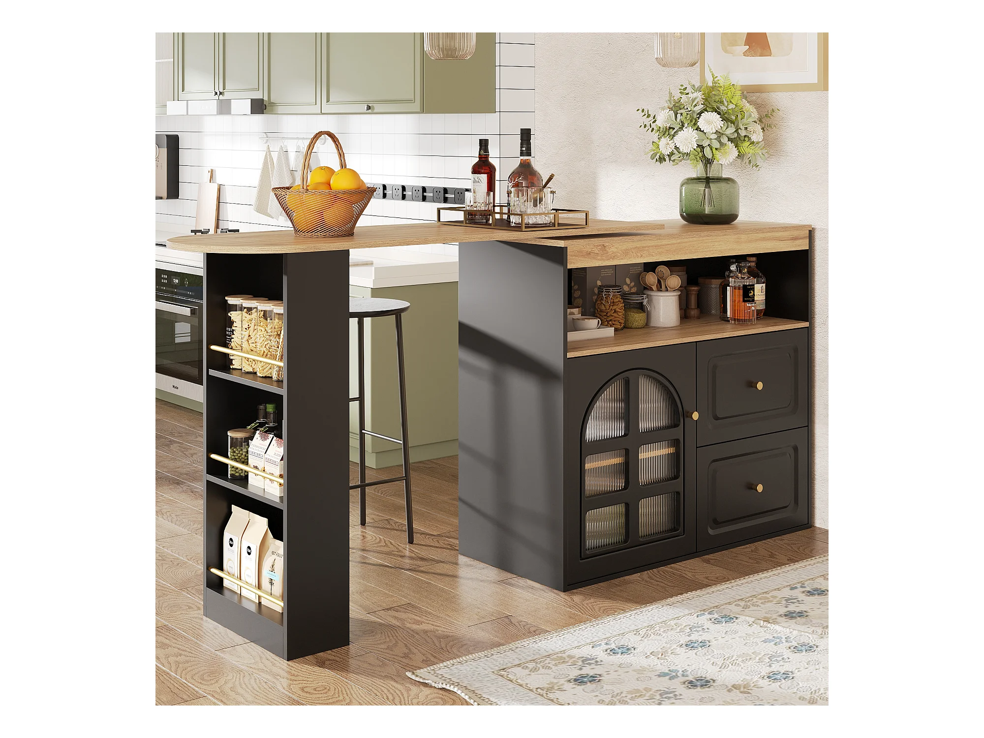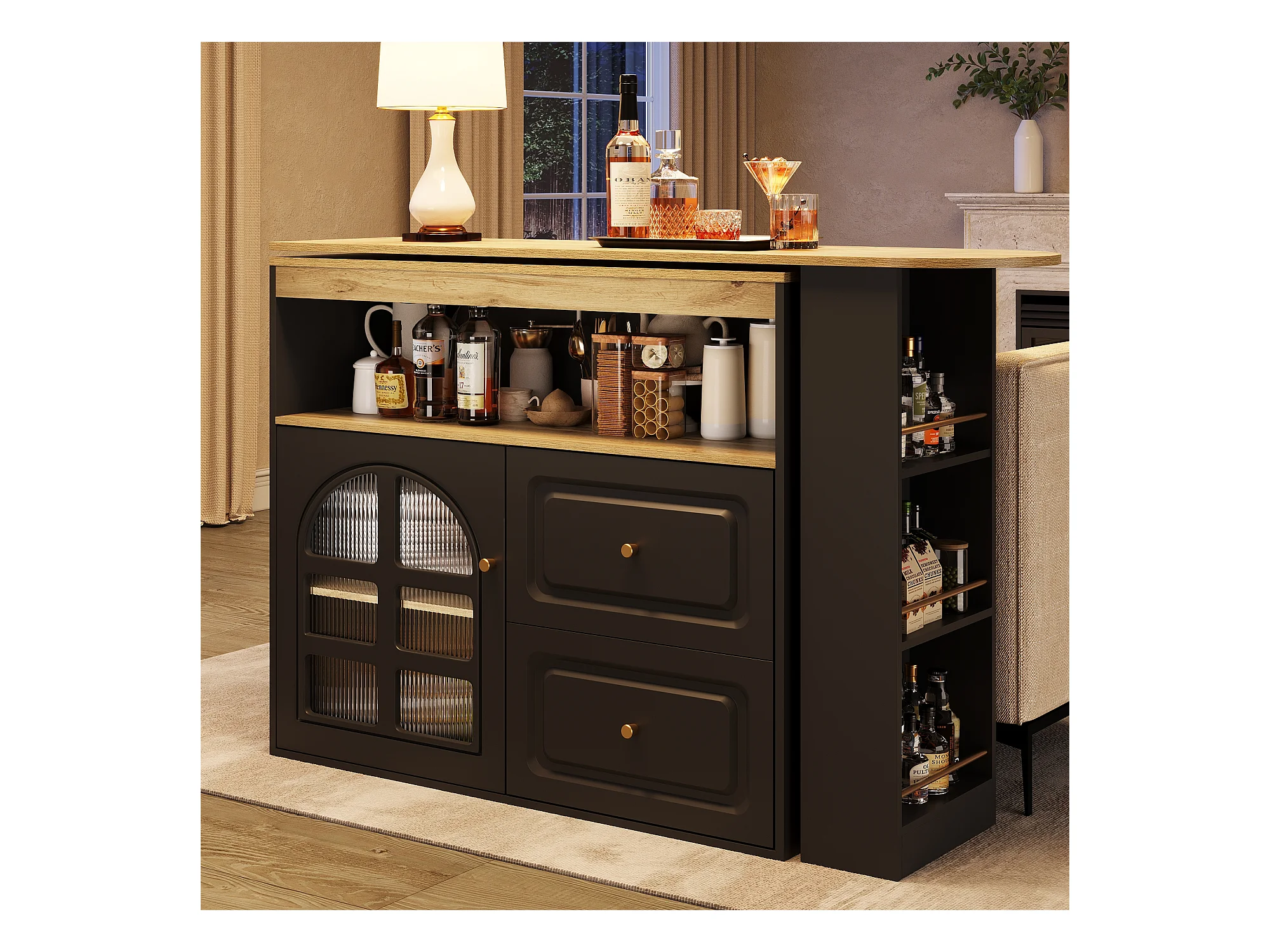 Meuble de bar rotatif - 204 x 39 x 104 cm - avec 2 tirois + 1 portes + 3 étagère à collation - MDF - noir