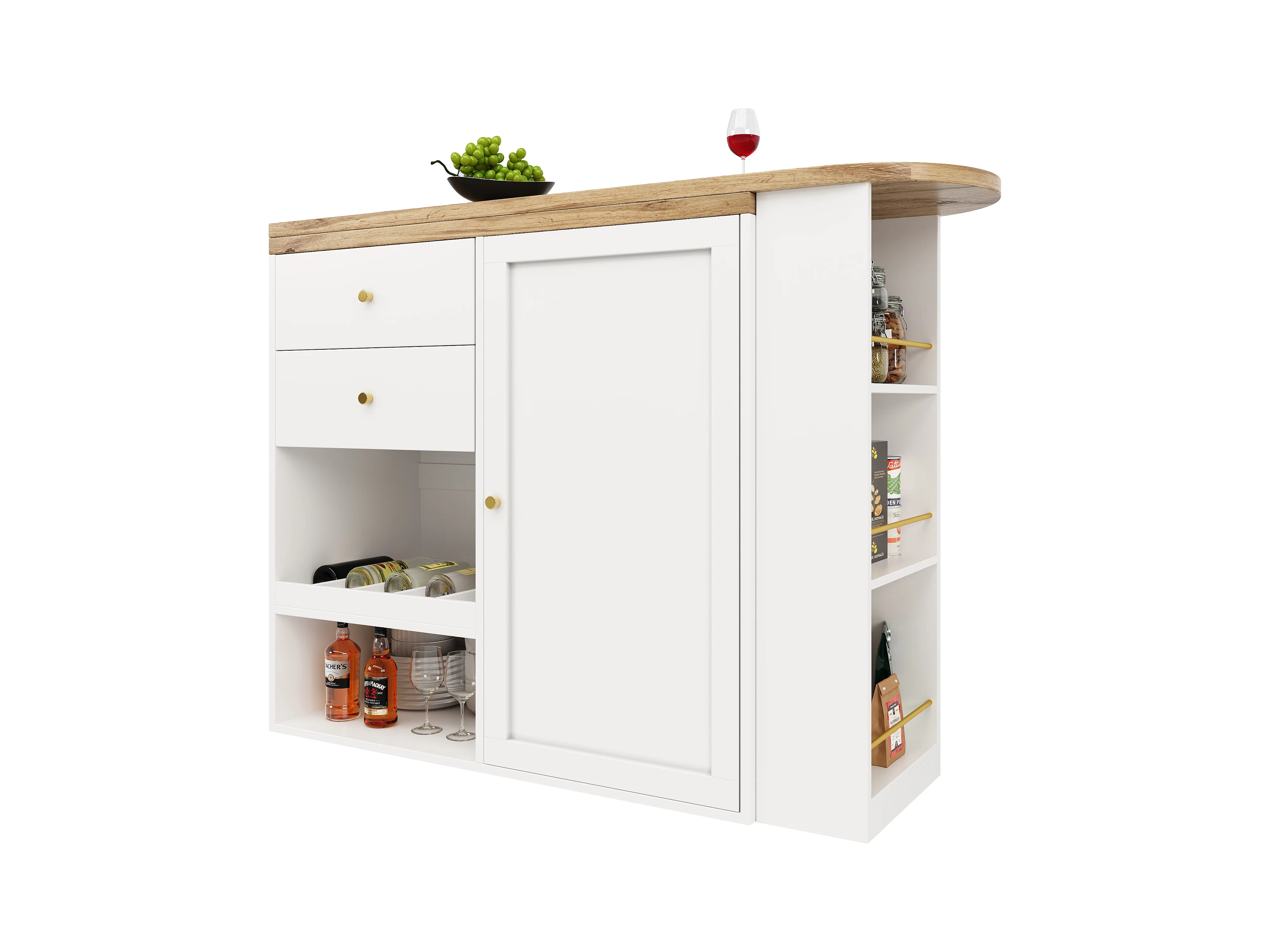 Meuble de bar rotative à 360° - 204 x 39 x 104 cm - avec 2 tiroirs + armoire à portes - MDF - blanc