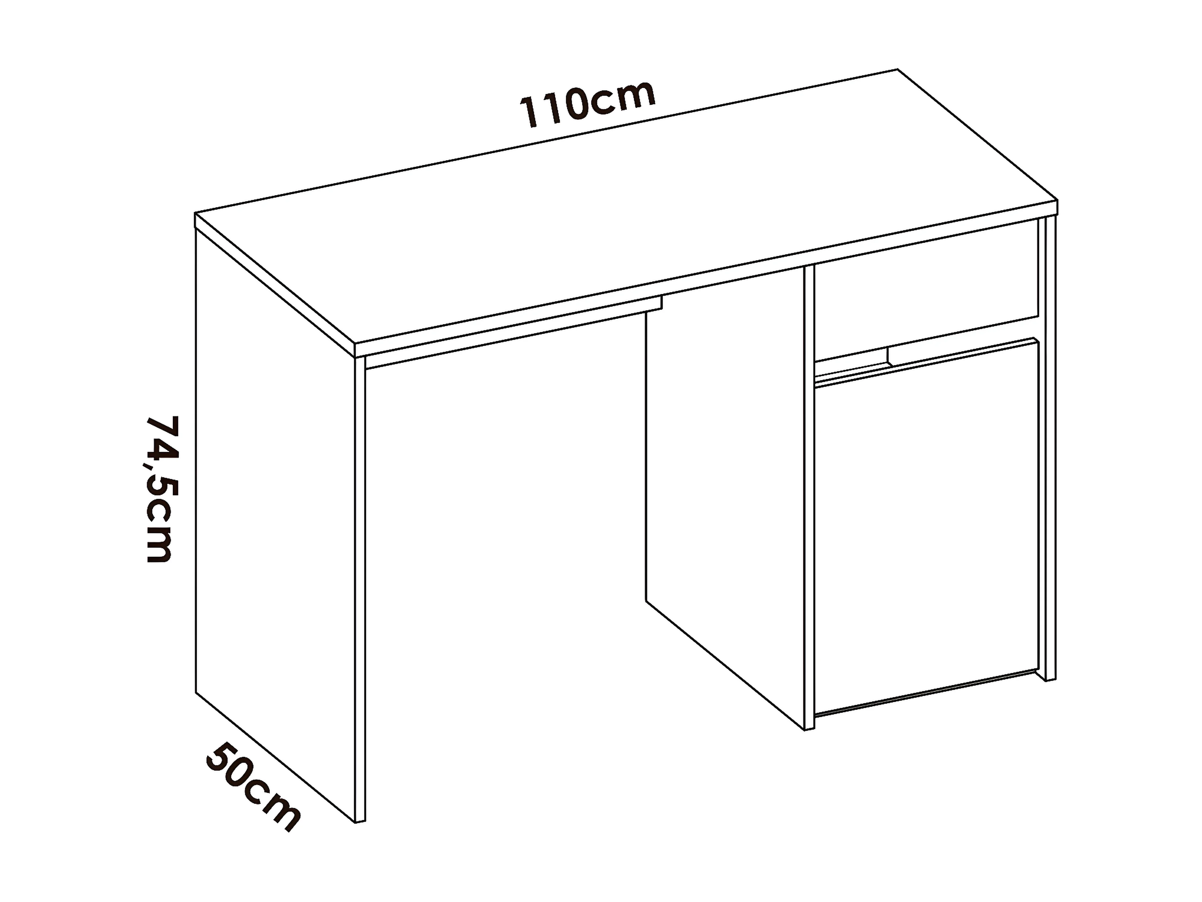 Meuble de bureau, table de bureau en bois mélaminé avec 1 tiroir et 1 porte coloris blanc - Longueur 110 x Profondeur 50 x Hauteur 74 cm