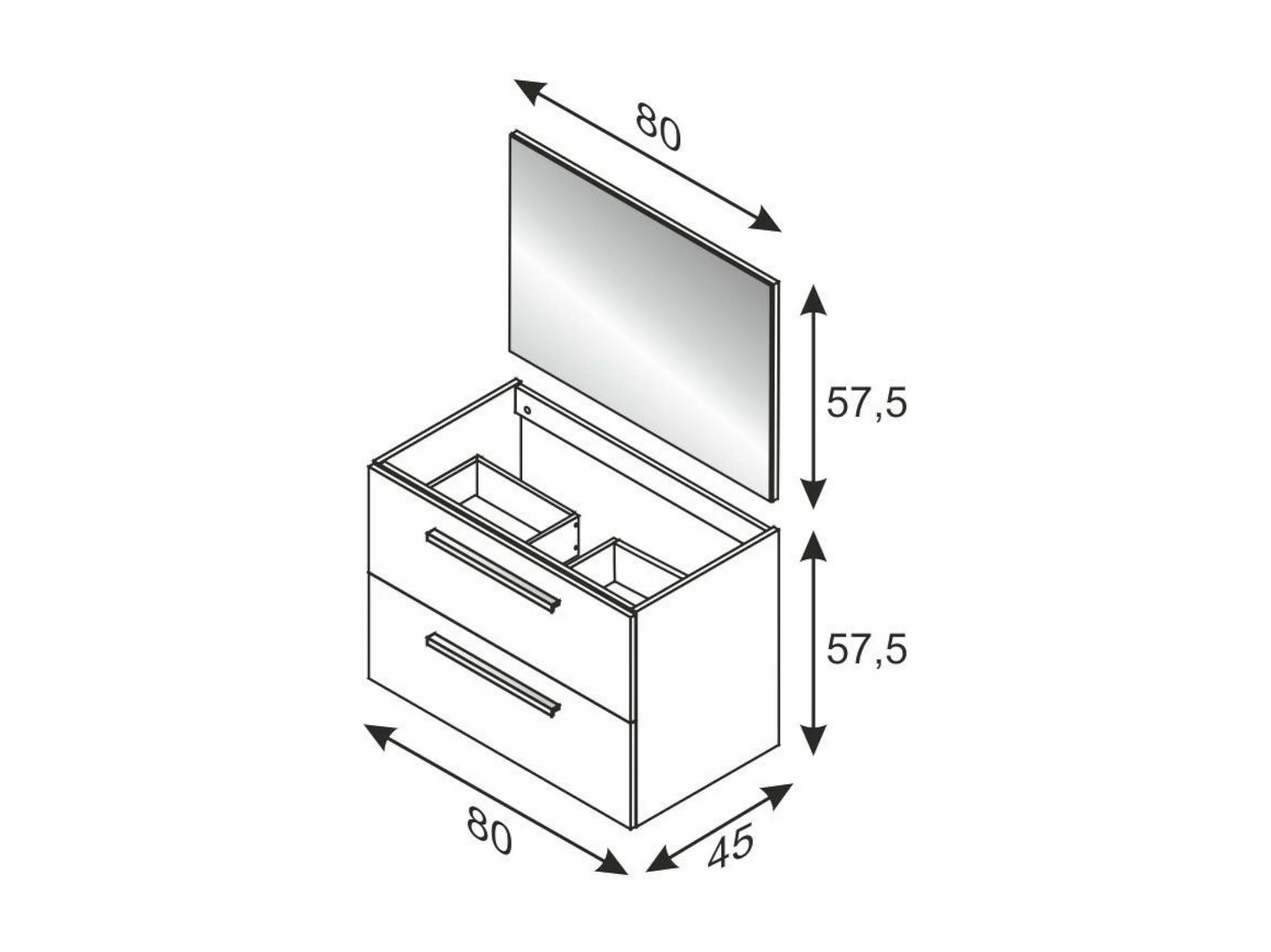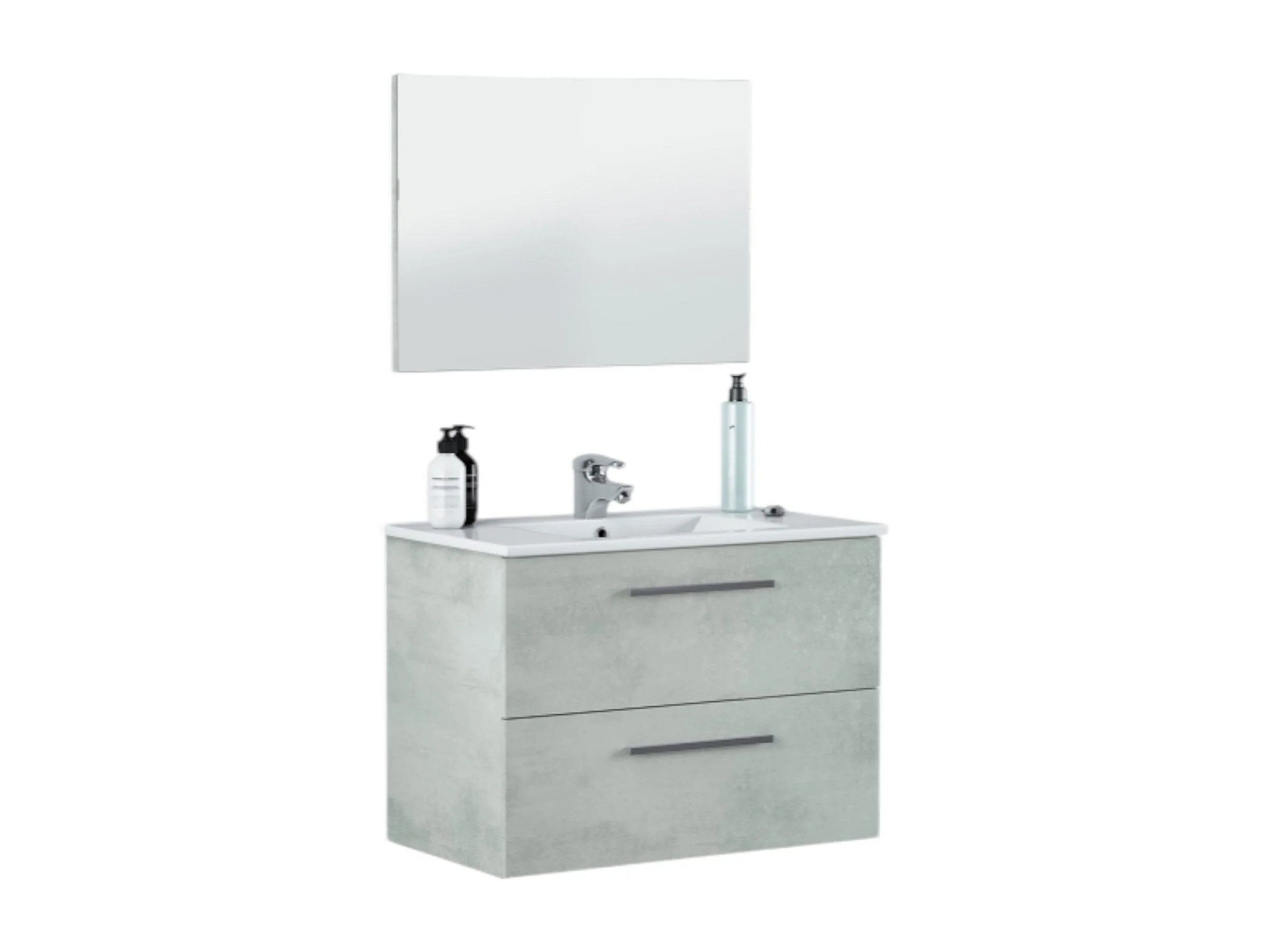 Meuble sous-vasque Dfell, Meuble de salle de bain suspendu, Armoire avec 2 tiroirs et miroir, 80x45h57 cm, Ciment