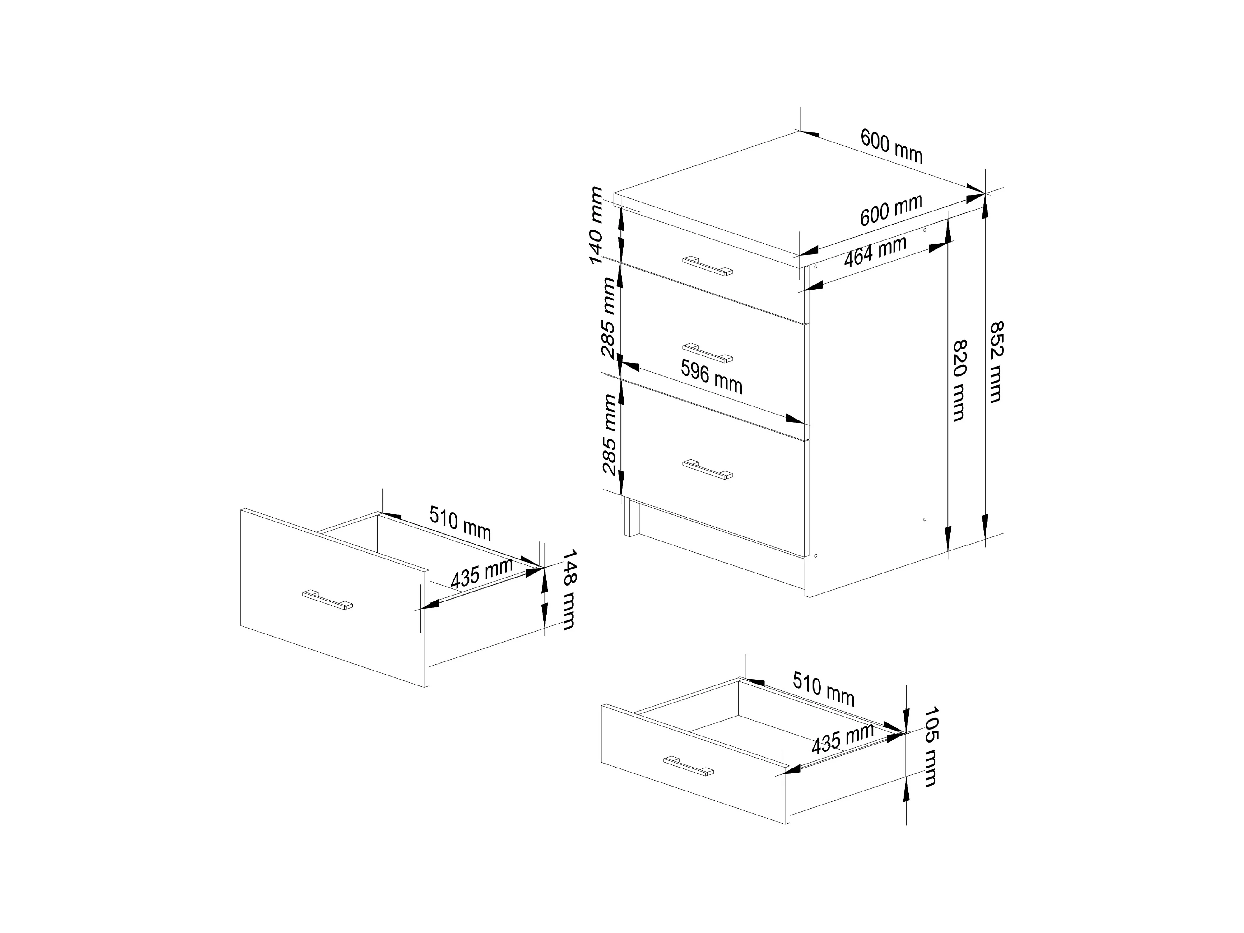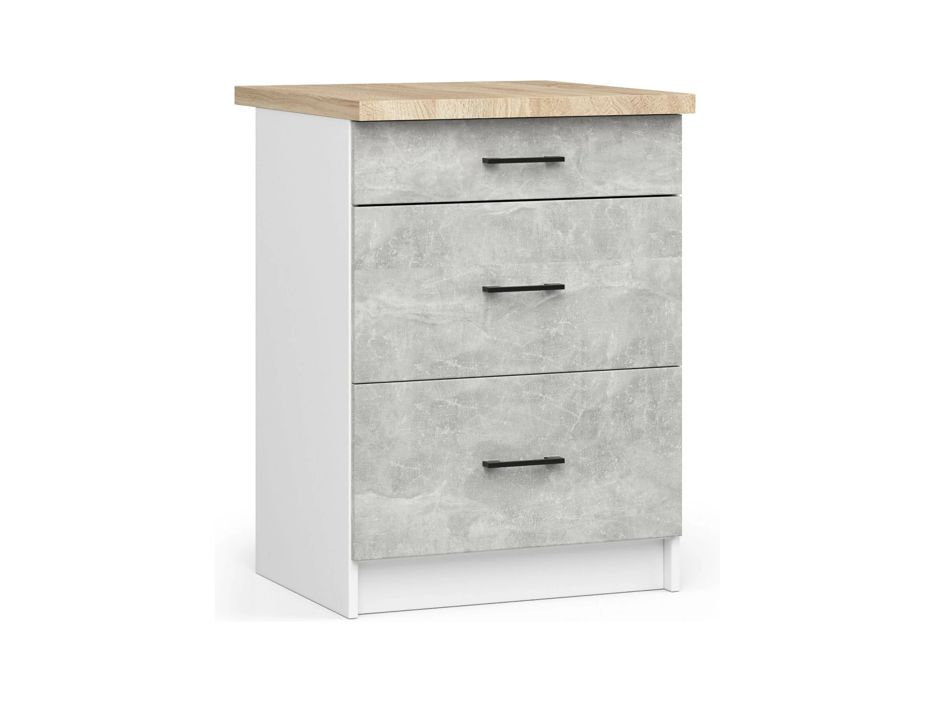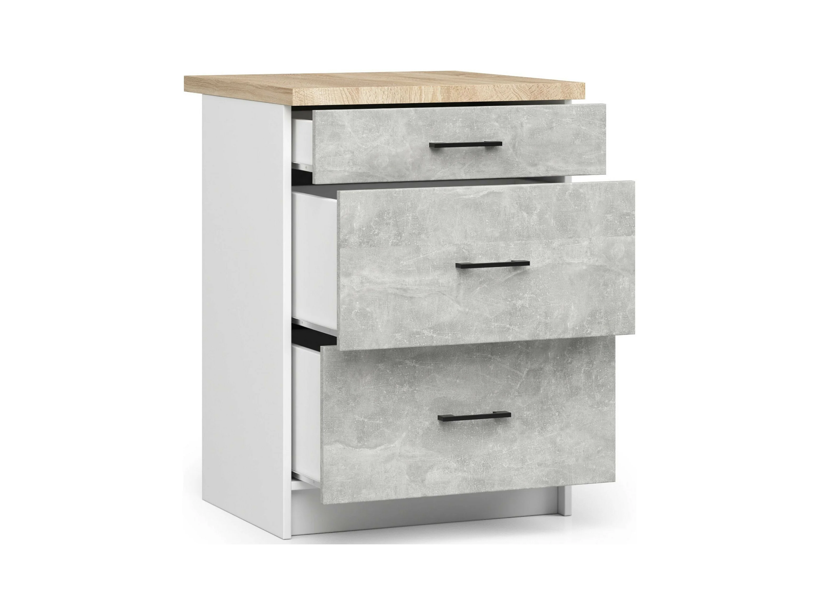 Armoires de cuisine basse AKORD S60 OLIWIA Blanc 60 cm 3 tiroirs façade Béton 60x46x85 cm