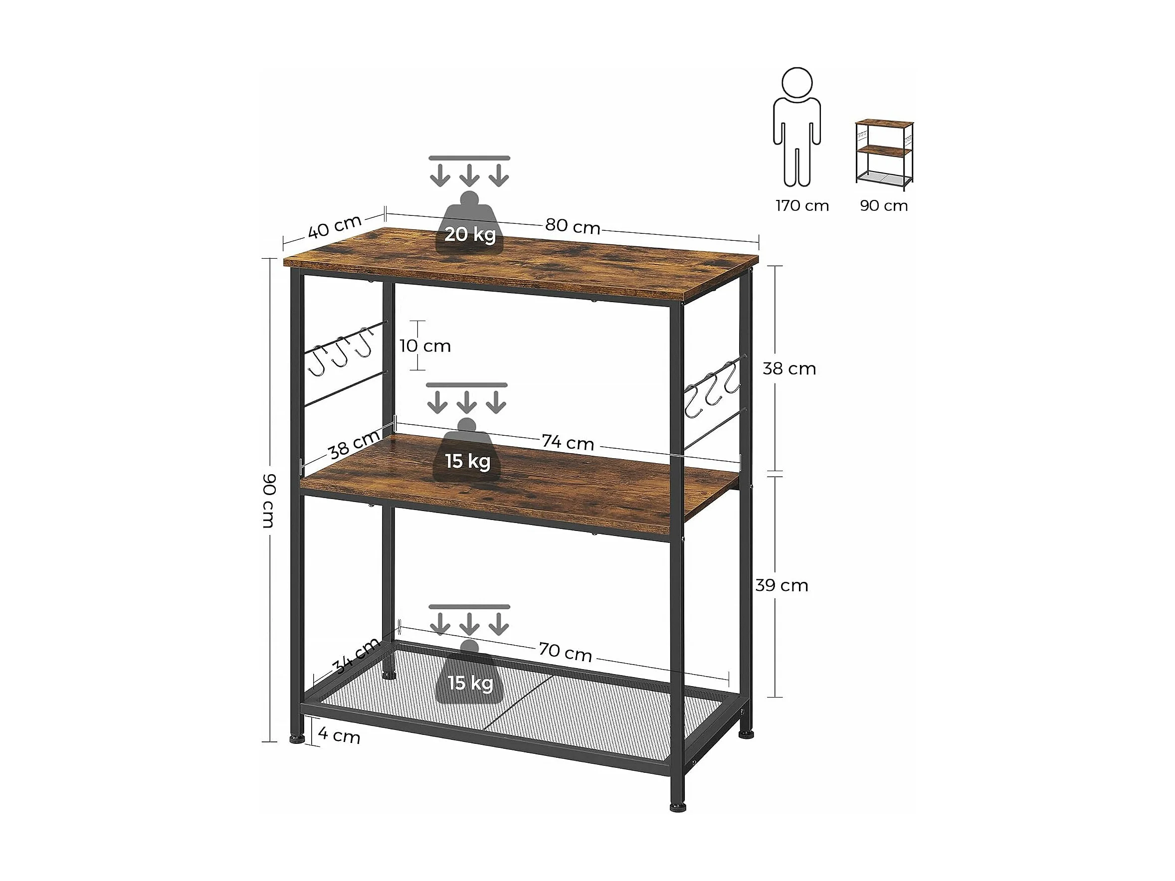 Meuble de cuisine étagère marron 80 x 40 x 90 cm 12_0003135