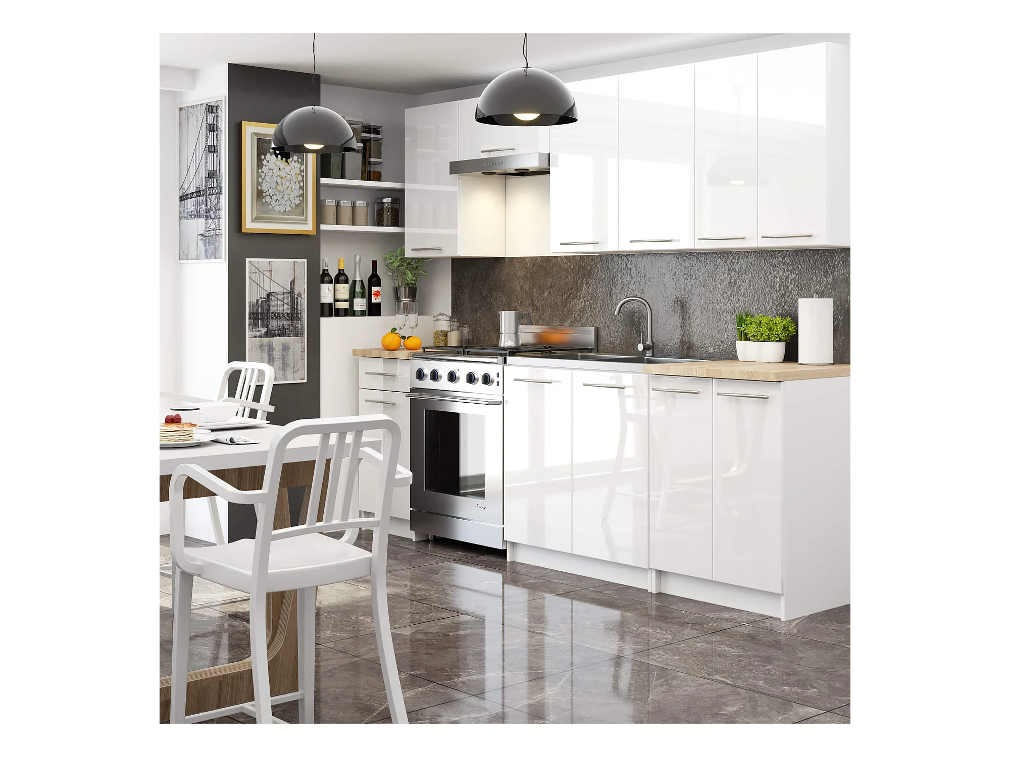 Meuble de cuisine haut AKORD W30 OLIWIA modulable Blanc 30 cm 1 porte façade Blanche Brillante 2 étagères 30x30x72 cm