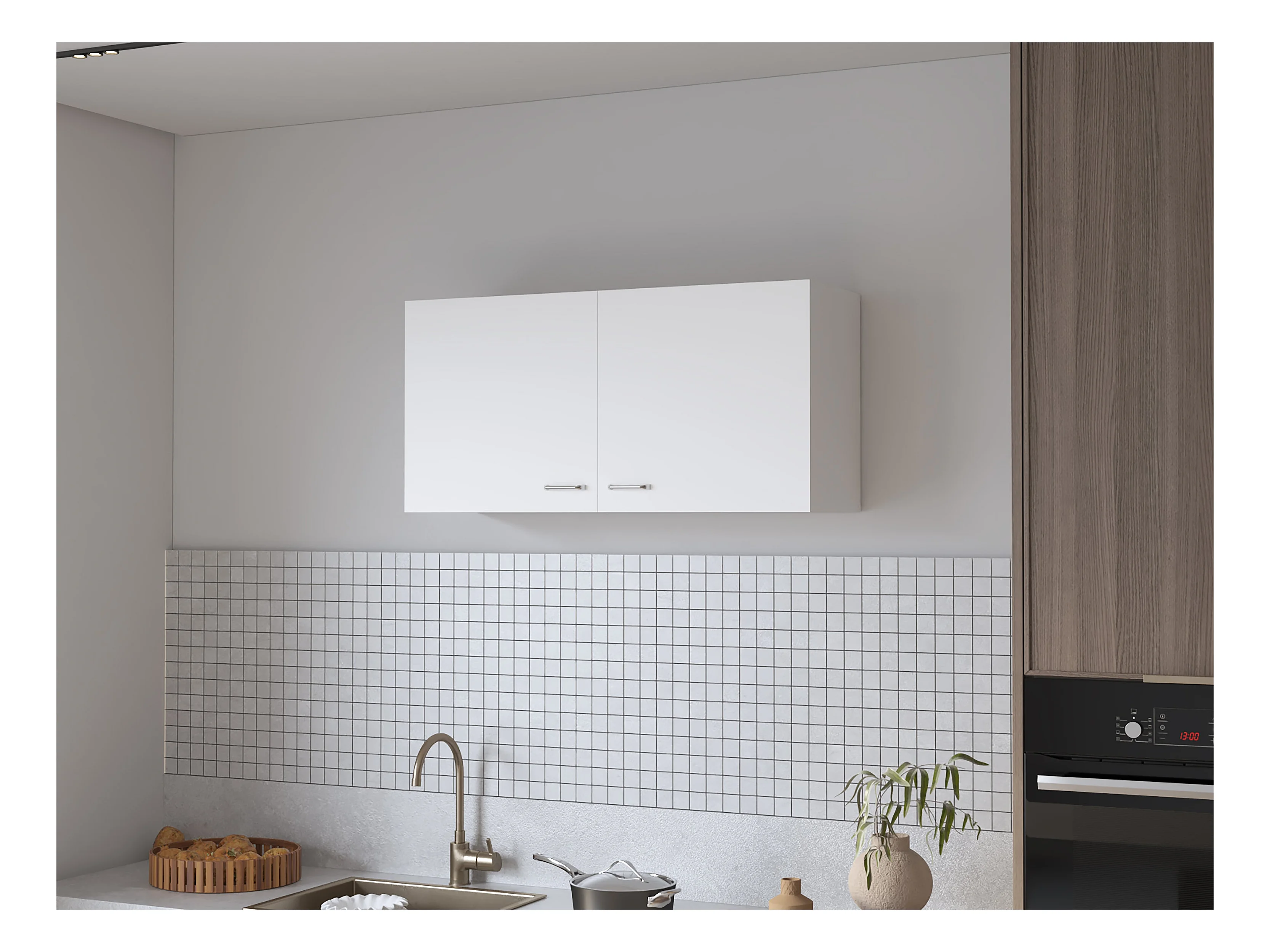 Meuble haut 2 portes coloris blanc, L100 x H60 x P28 cm