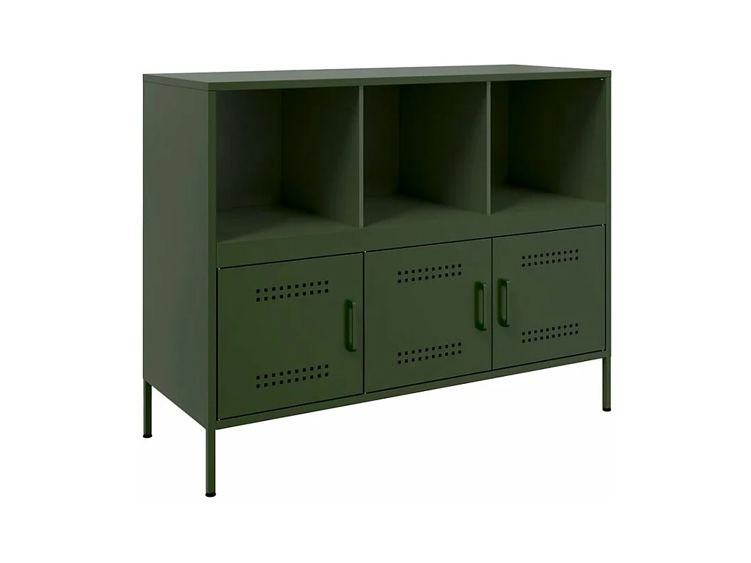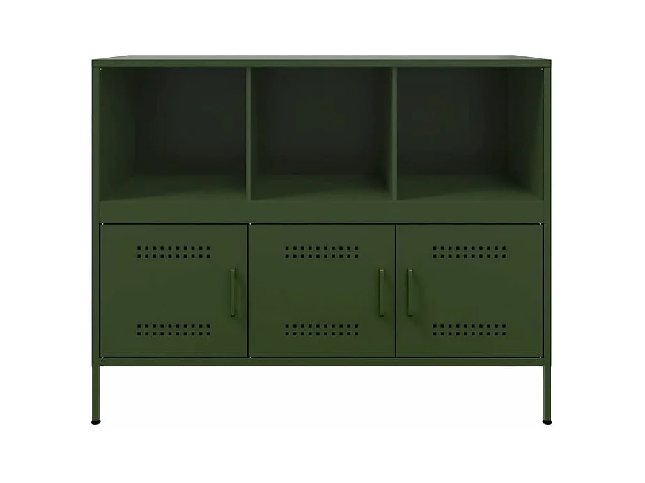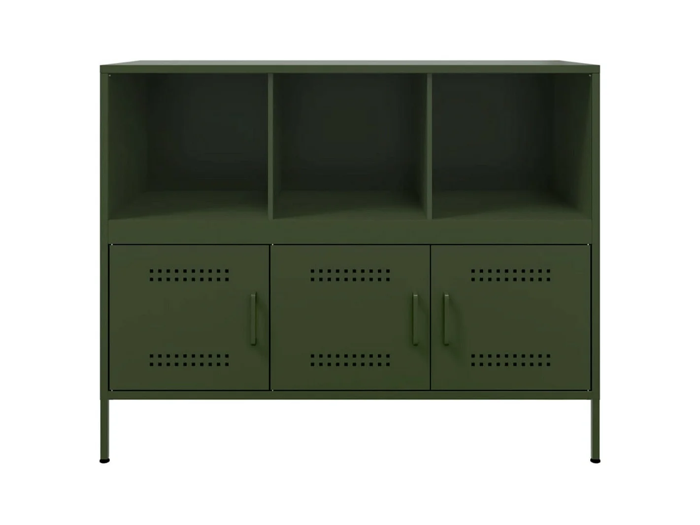 Meuble de rangement 3 portes 3 niches en acier Klavin 100cm - Style Industriel-Couleur Vert olive