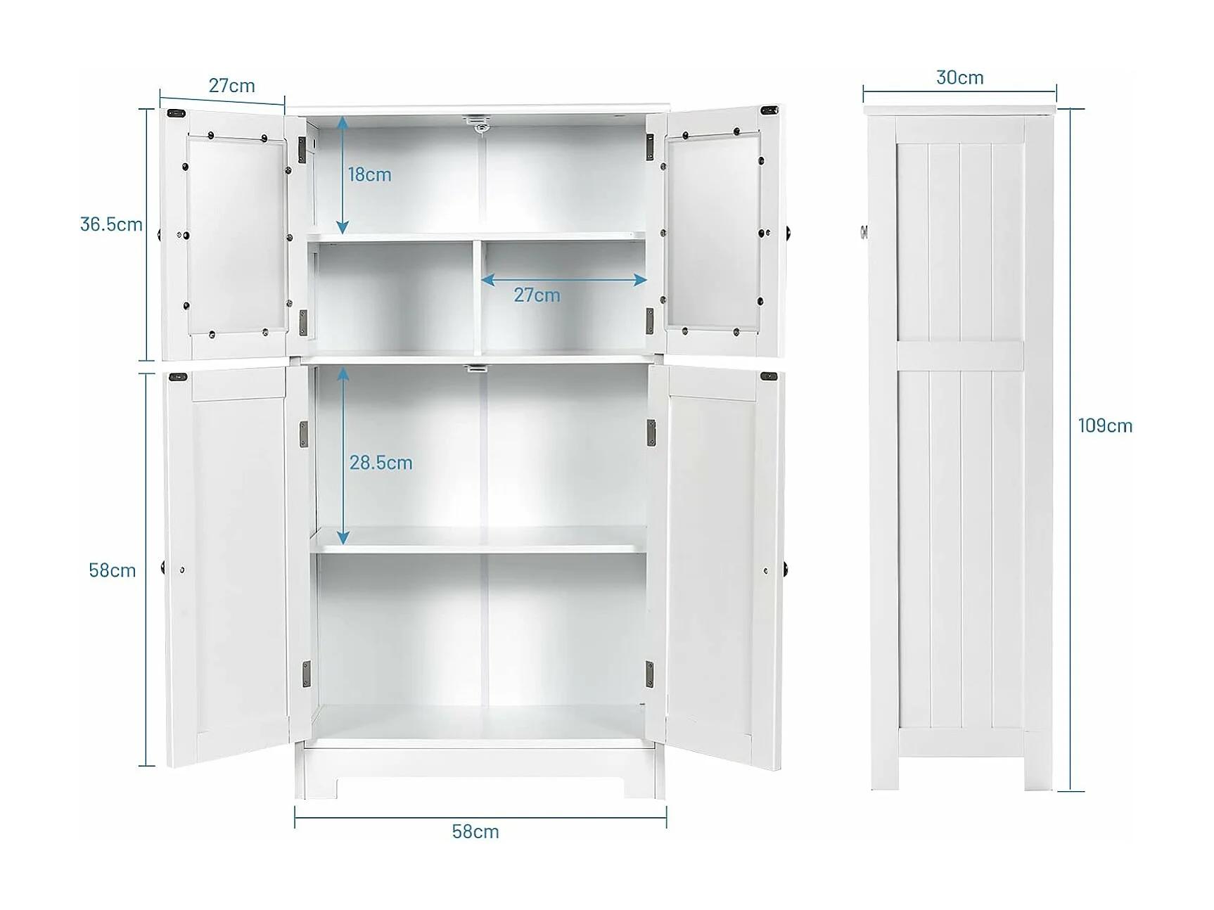 Meuble de Rangement 58 x 30 x 109 CM avec Etagère Réglable Armoire Polyvalent pour Salon,Chambre,Bureau,Cuisine Blanc