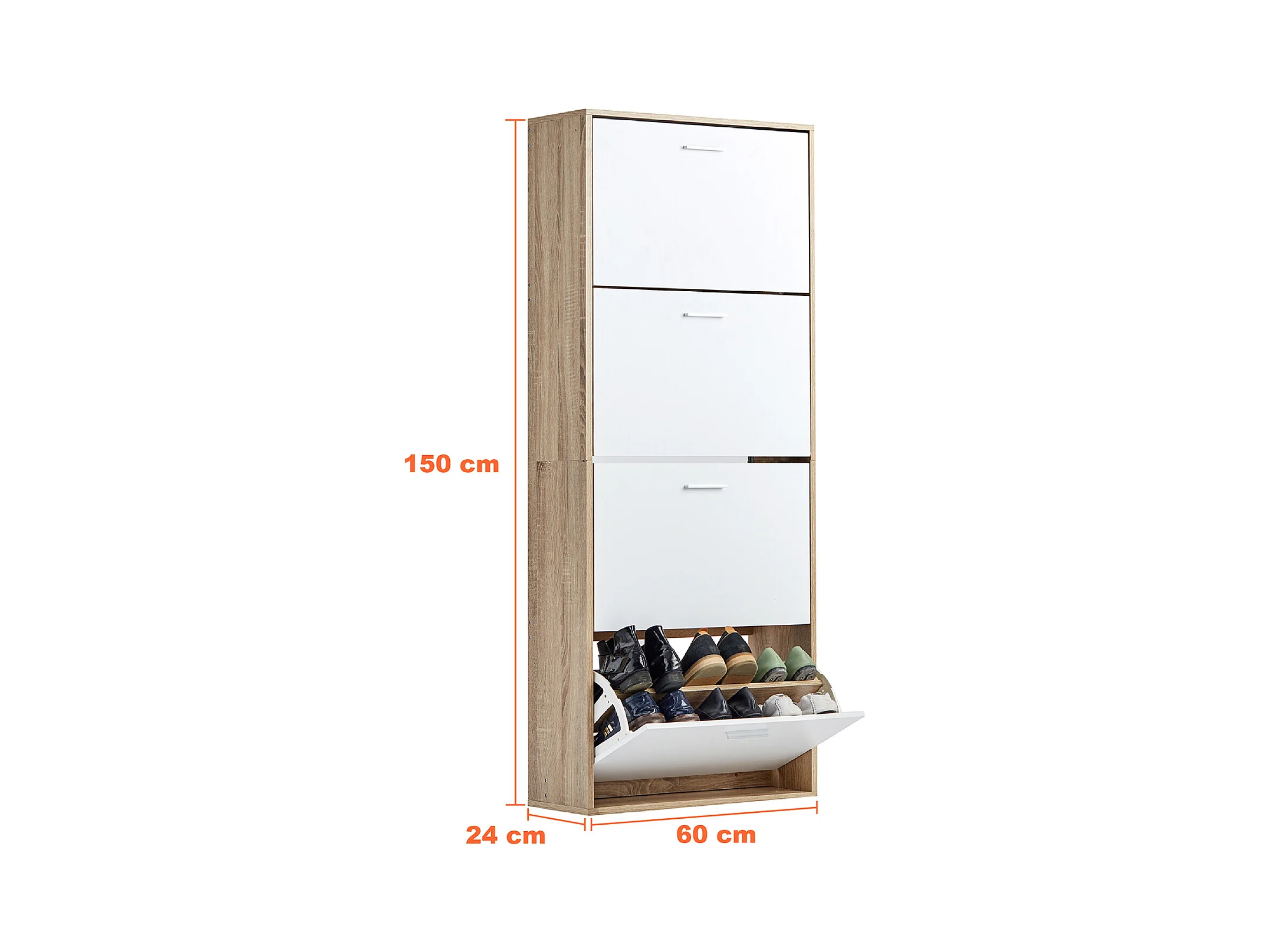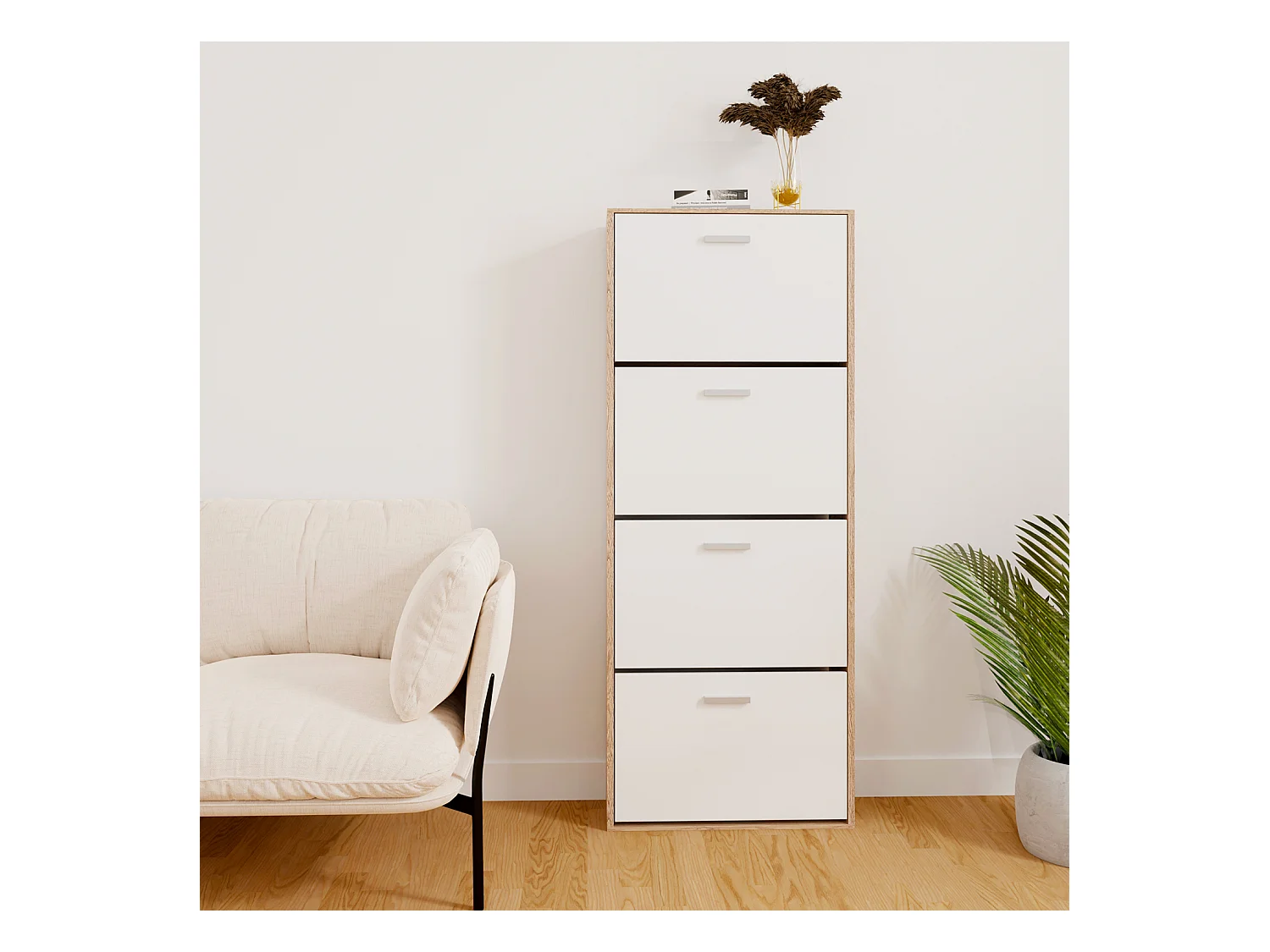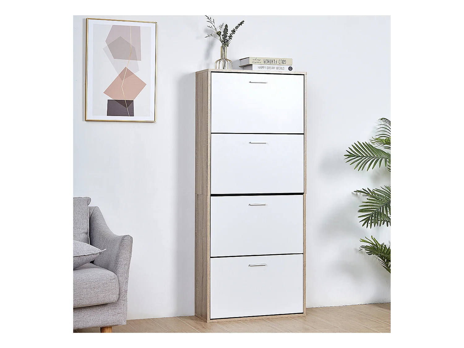 CASABEL Meuble Rangement Chaussure 24 Paires - Pour Entree Couloir - 60x24x150 cm - Blanc Bois Clair