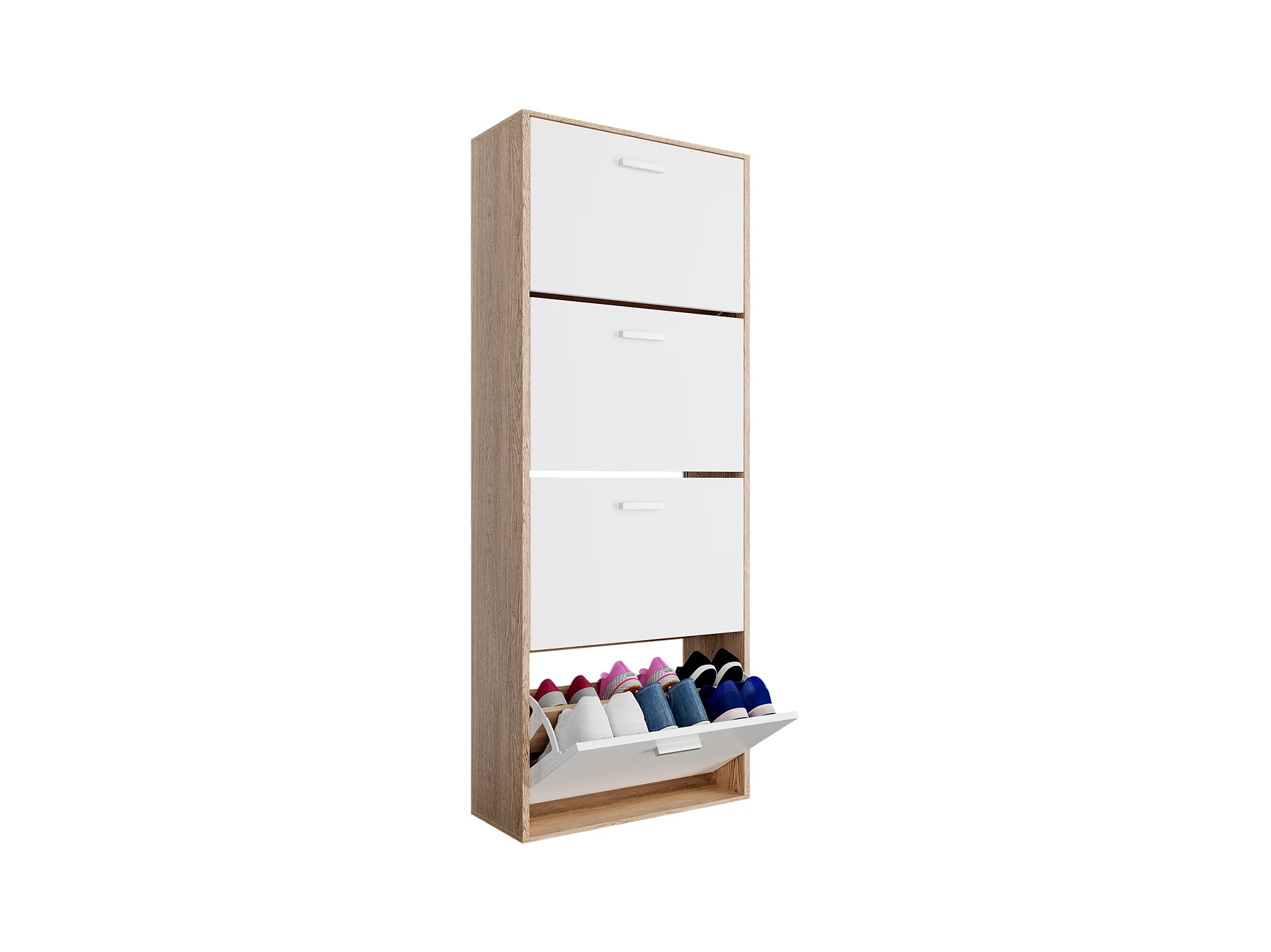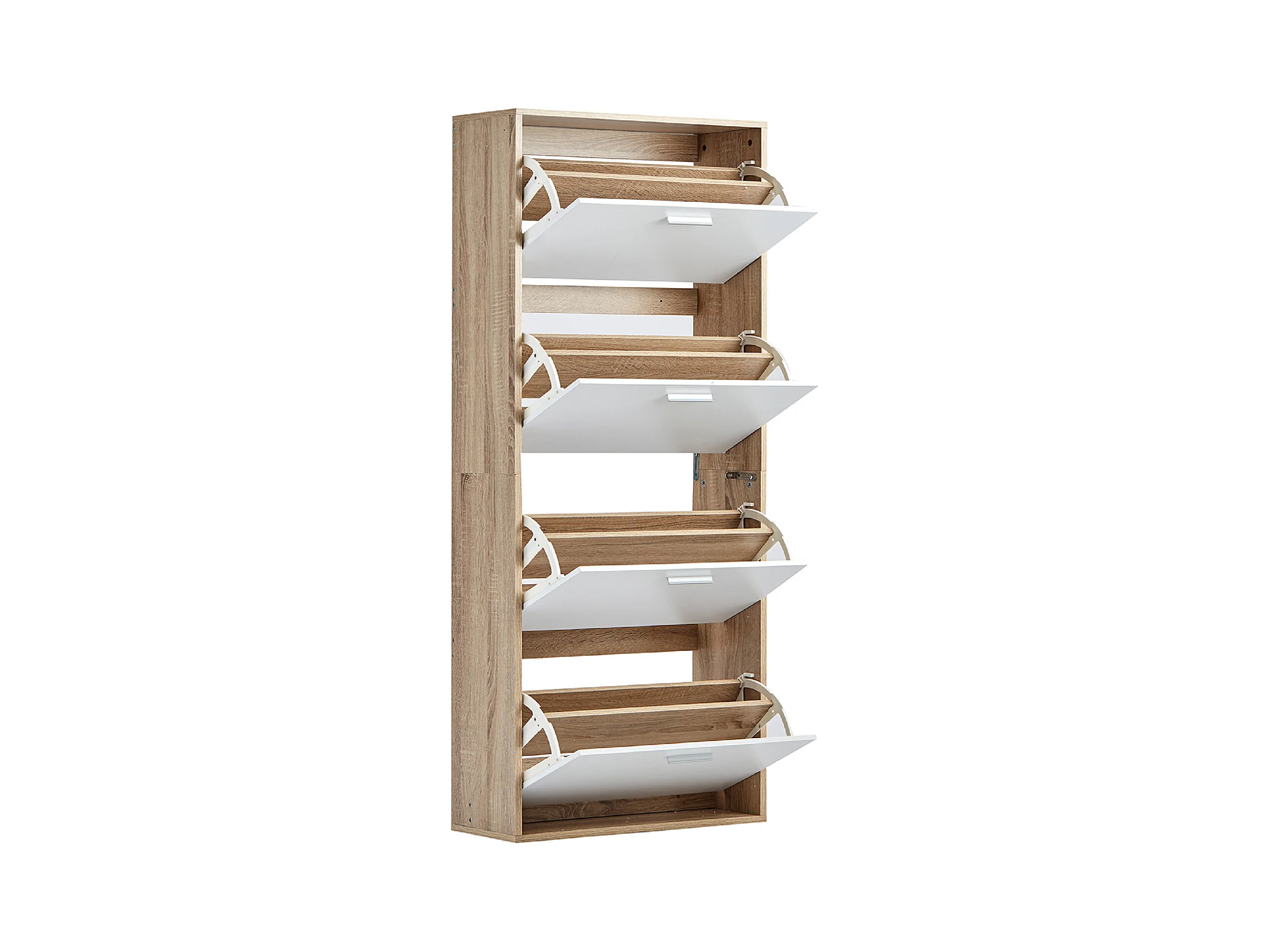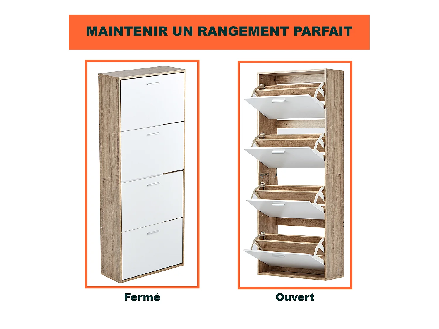 CASABEL Meuble Rangement Chaussure 24 Paires - Pour Entree Couloir - 60x24x150 cm - Blanc Bois Clair