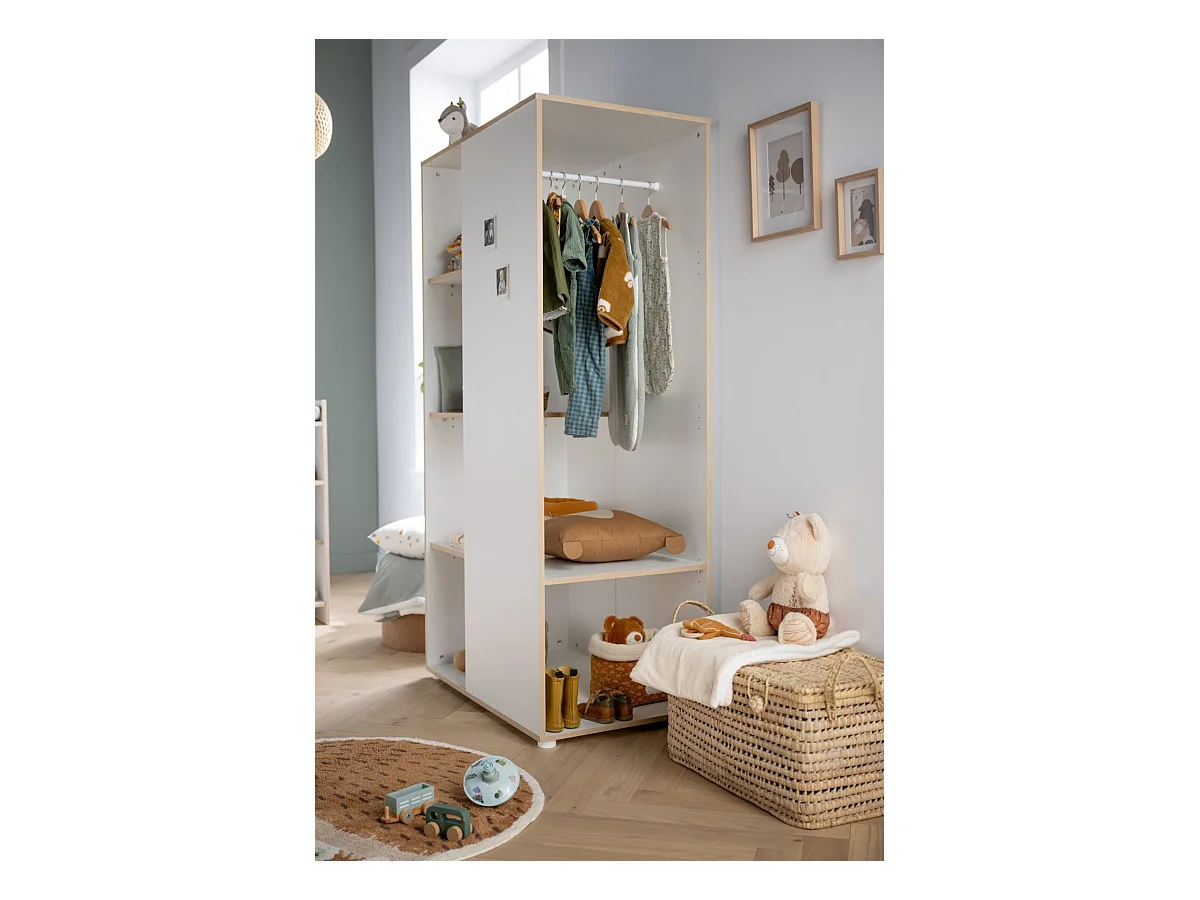 Meuble de rangement avec étagères et penderie en bois blanc et chant bois FIRST - BabyPrice
