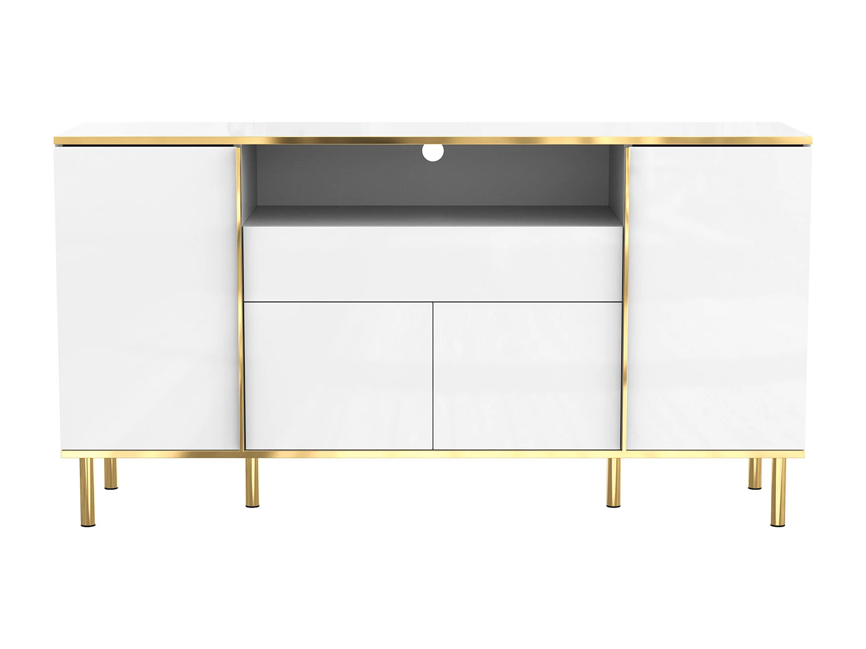Meuble de Rangement blanc Buffet avec Quatre Portes et Deux tiroirs Armoire LED Moderne
