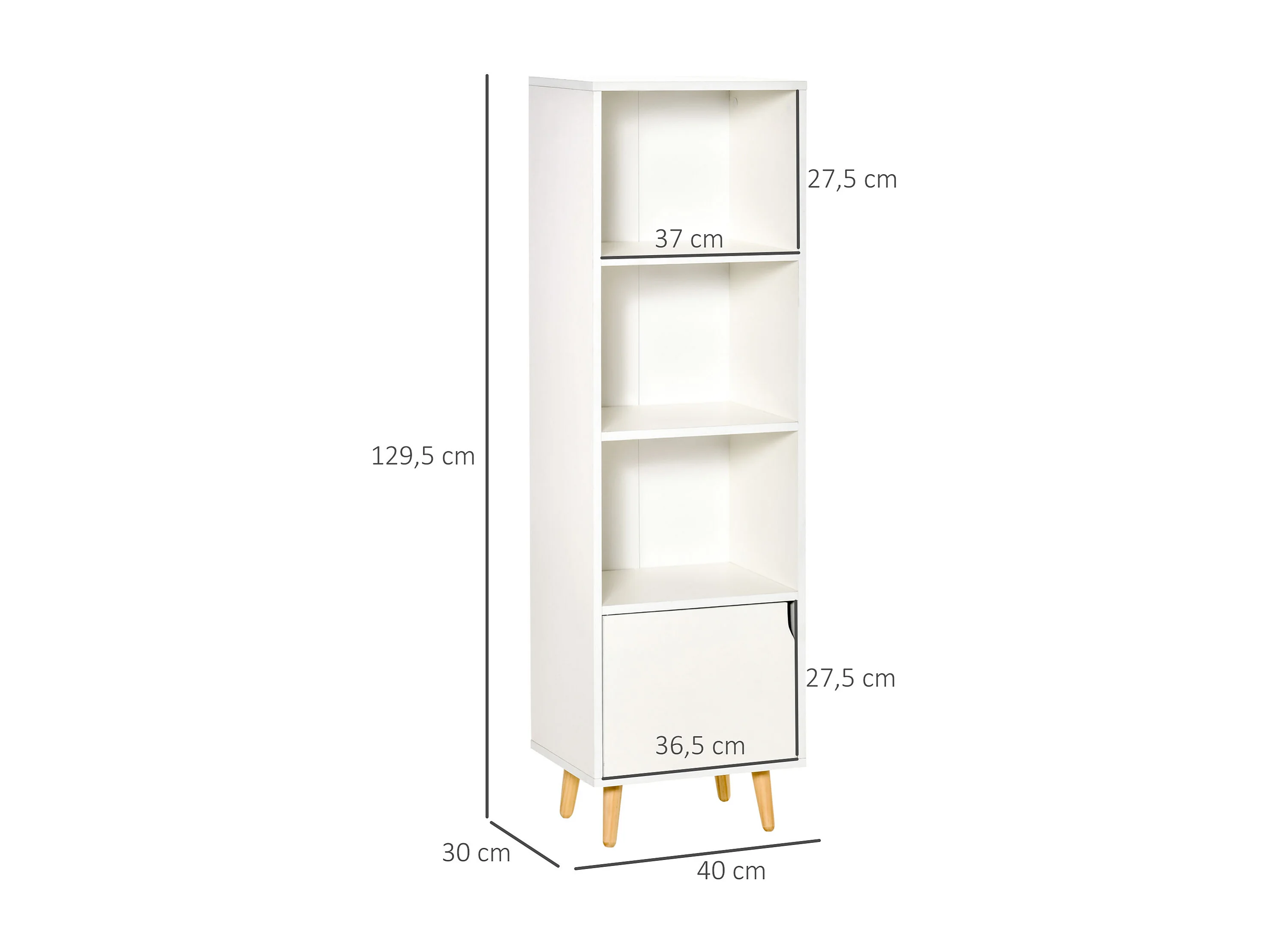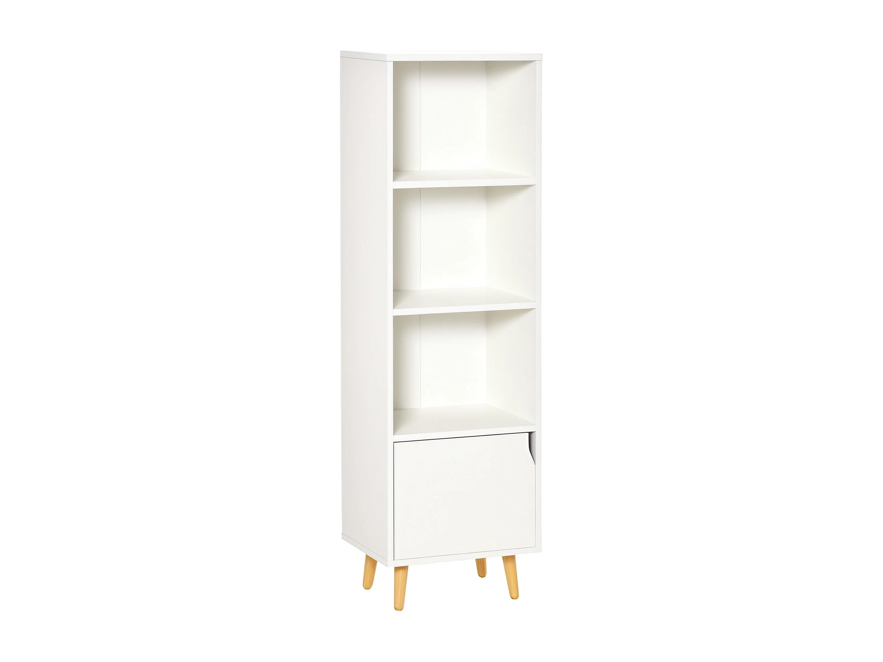 Bibliothèque étagère scandinave design maison 5 niches étagère pieds effilés bois pin MDF blanc