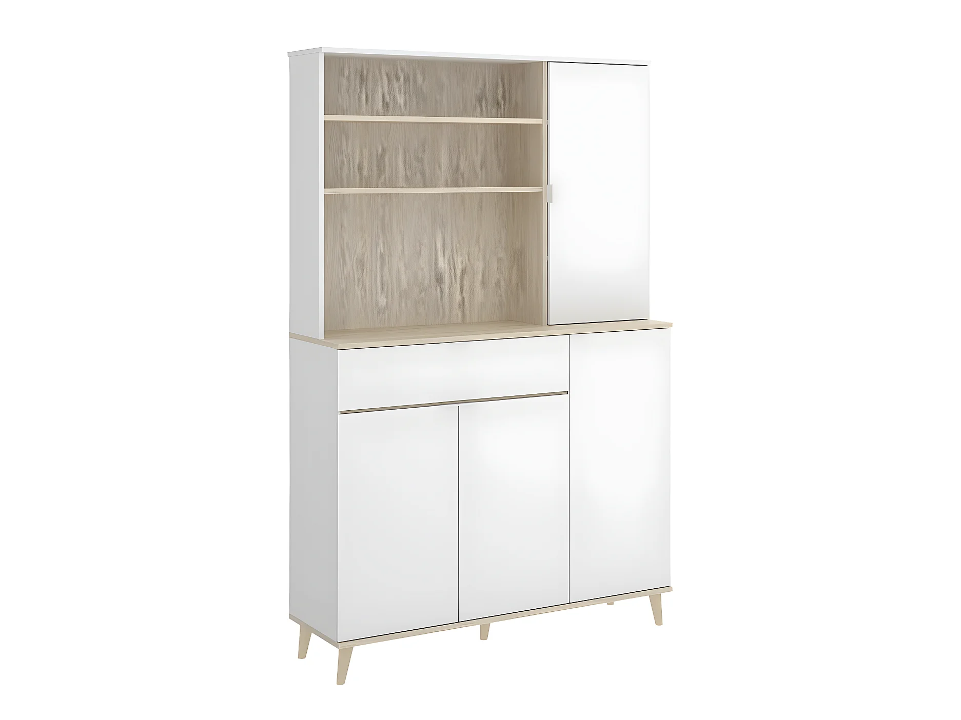 Meuble de rangement coloris blanc/naturel - Longueur 119 x Profondeur 40 x Hauteur 188 cm