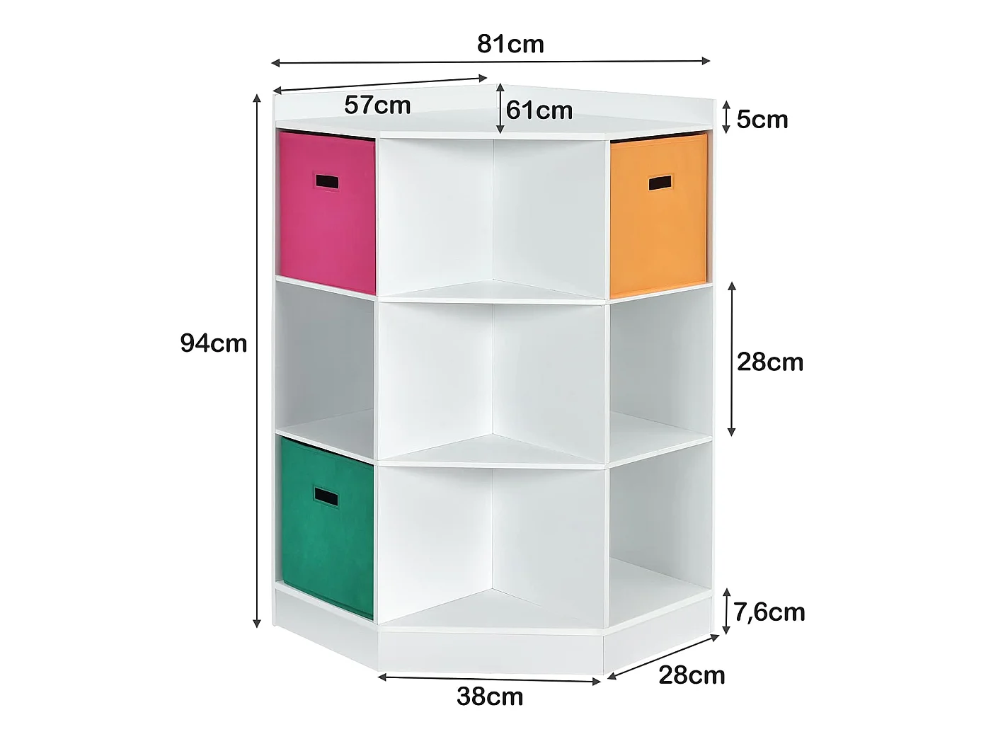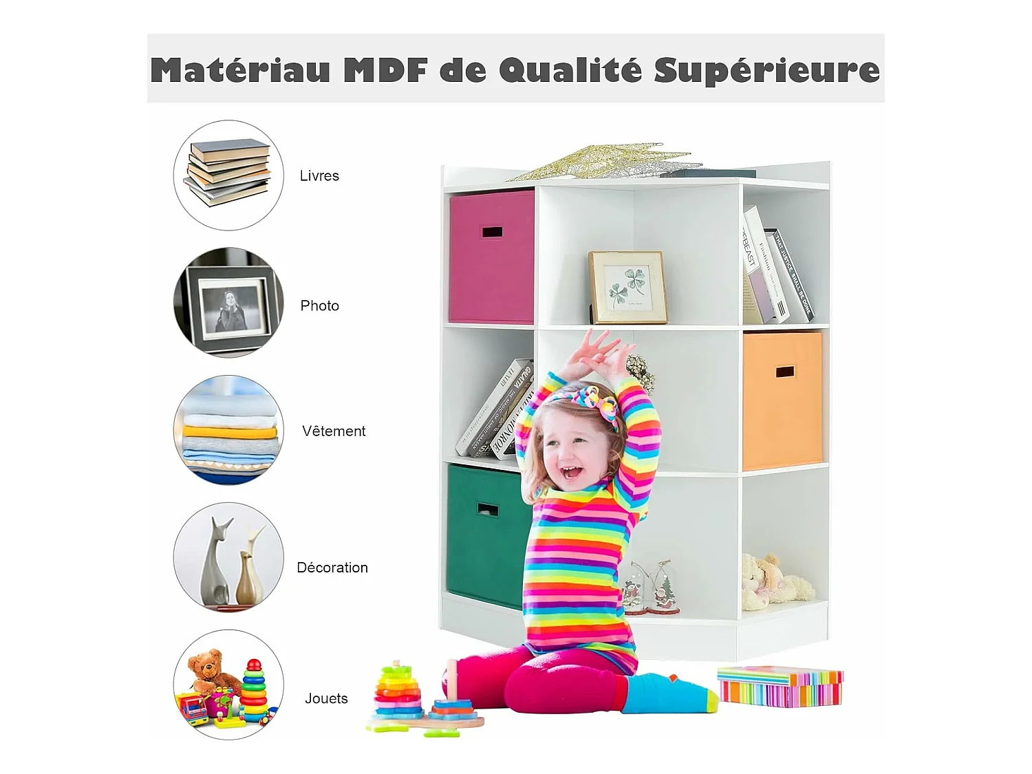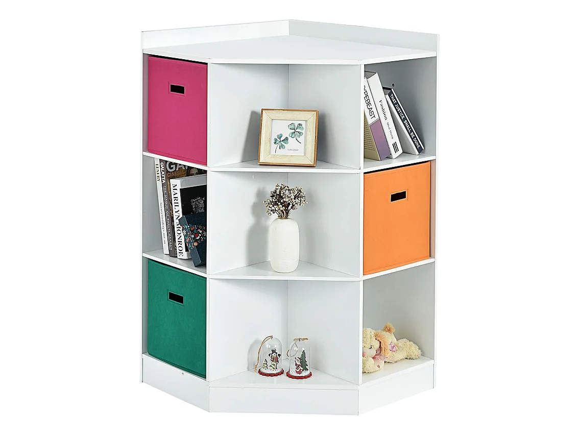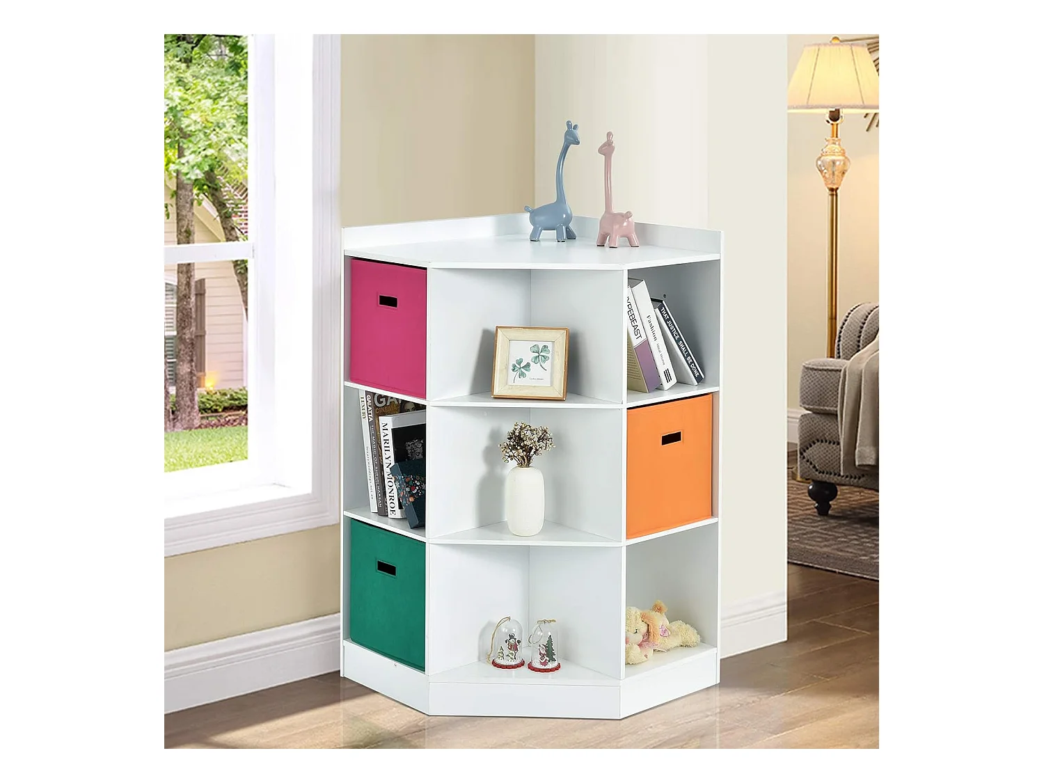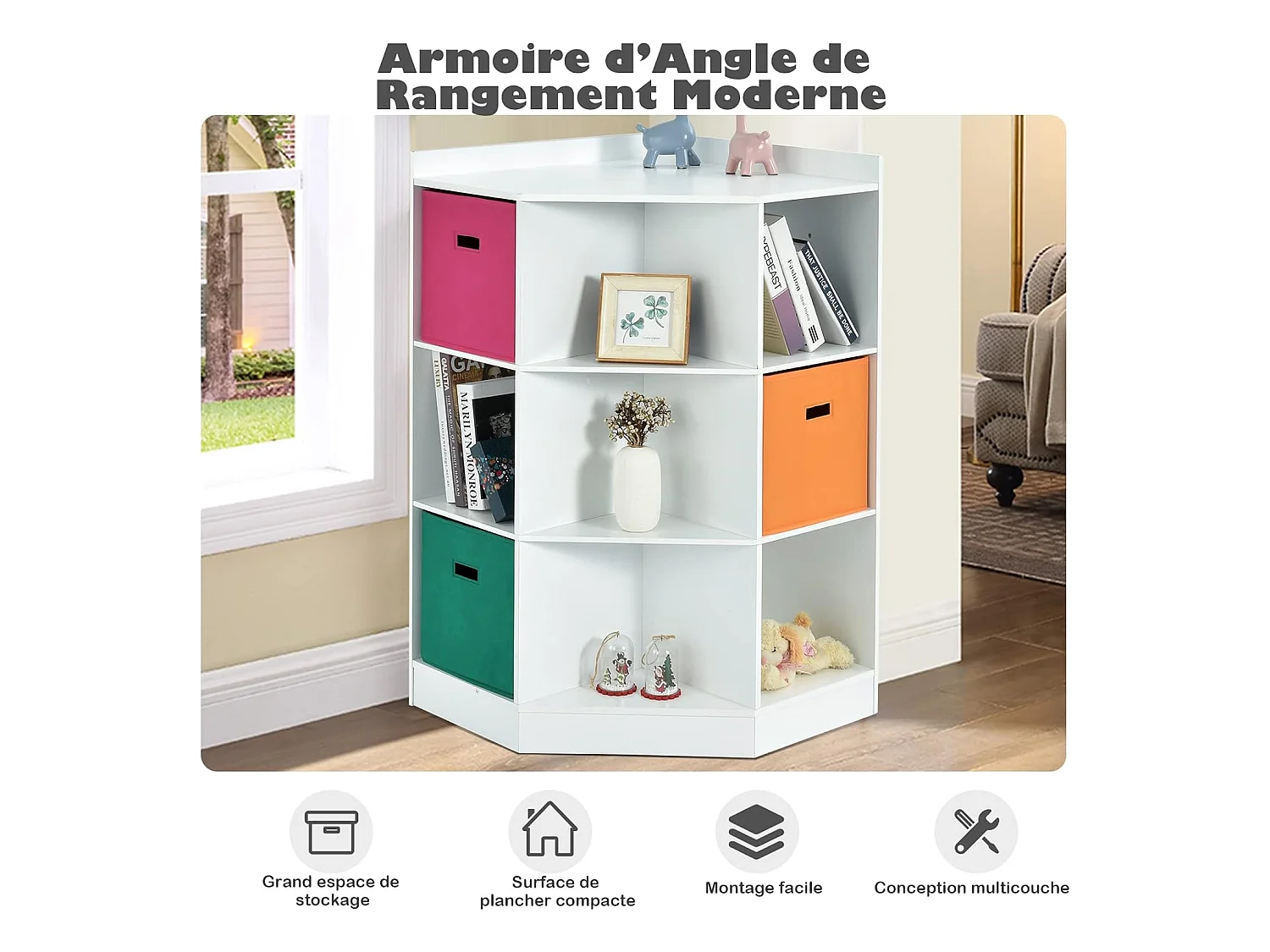 Meuble de Rangement d'angle Enfants avec 9 Niches, Bibliothèque d'angle Enfant avec Étagère Supérieure
