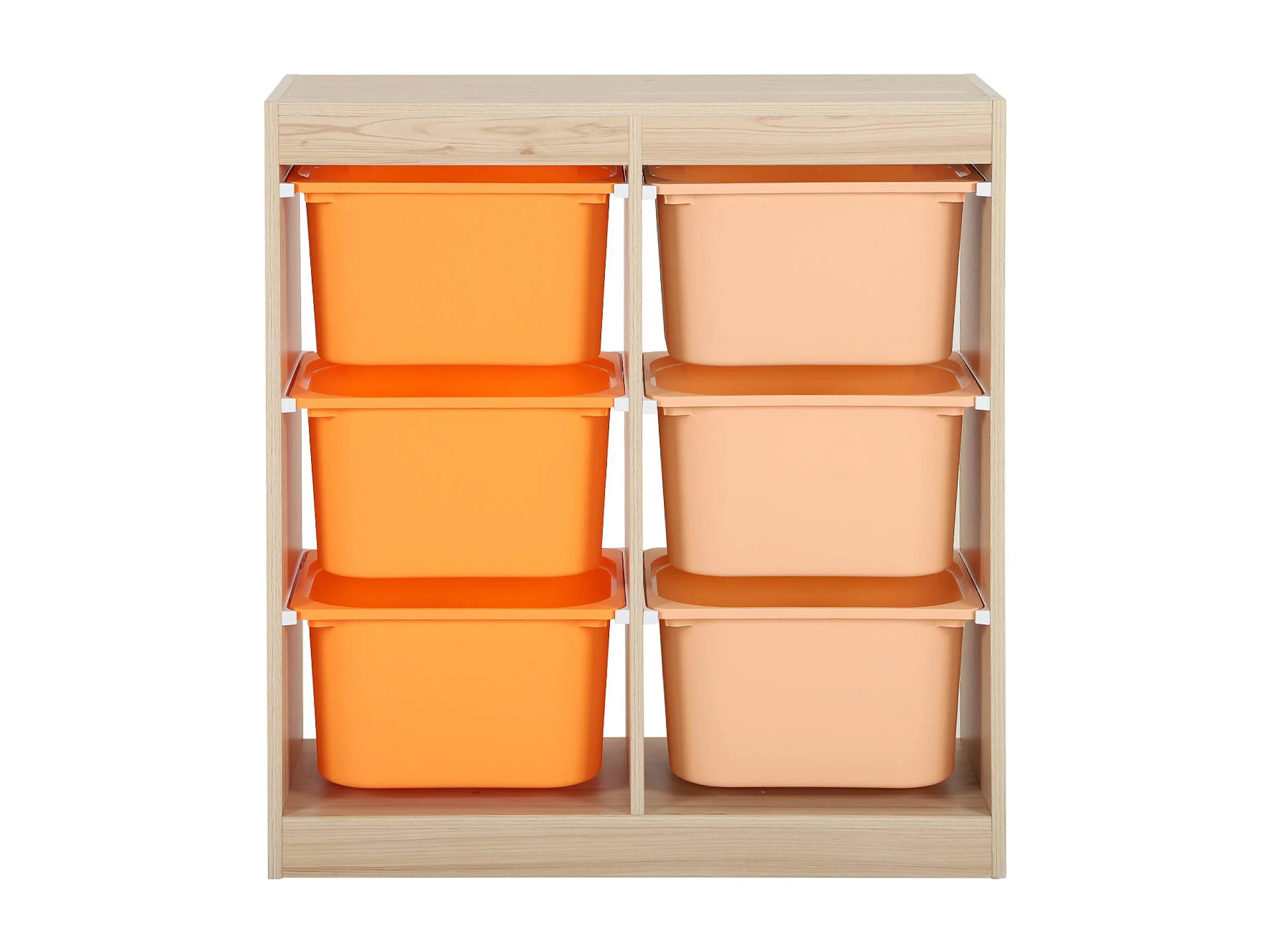 Meuble de rangement naturel pour enfant. 6 bacs en plastique orange pêche - Sora