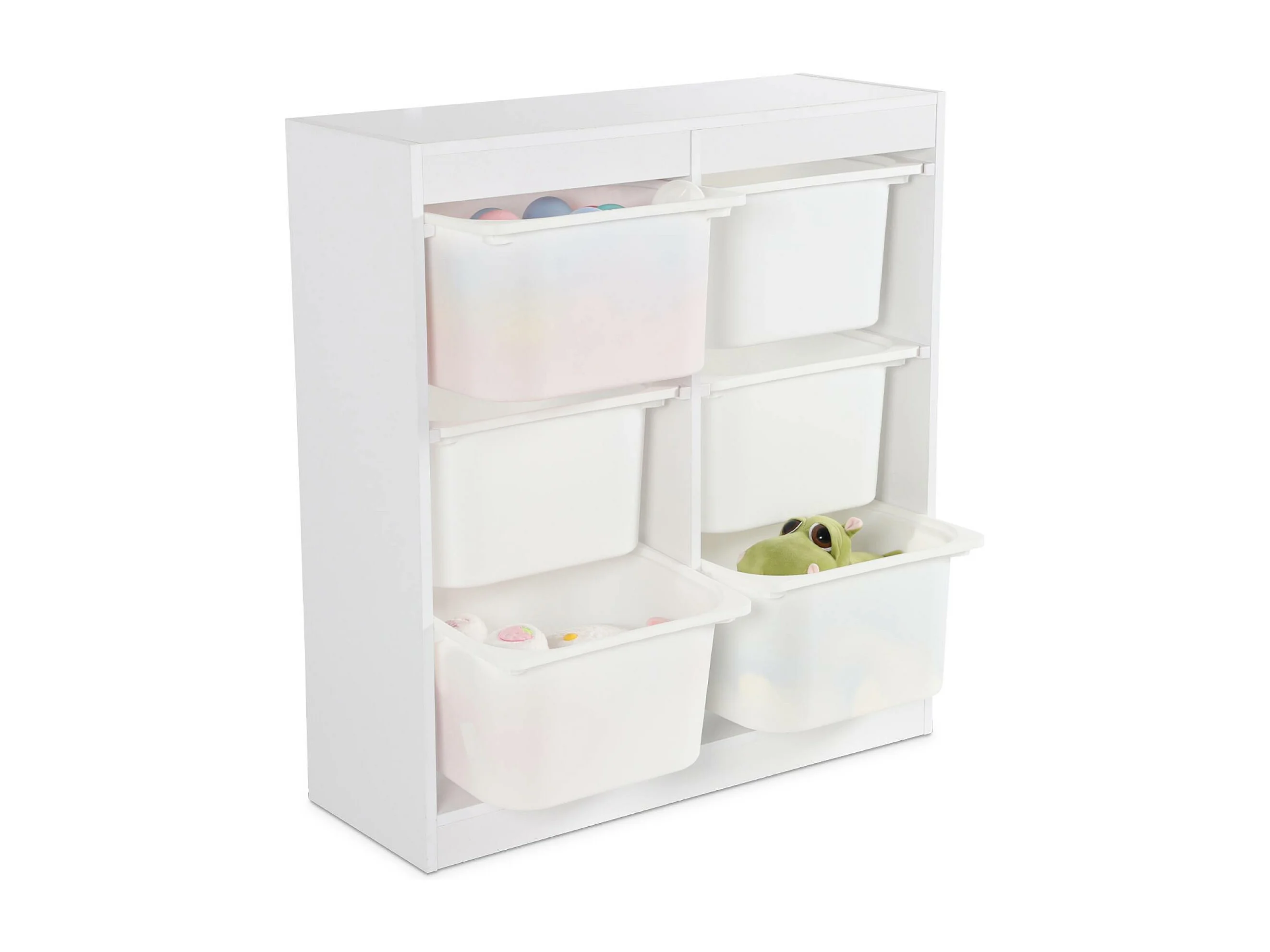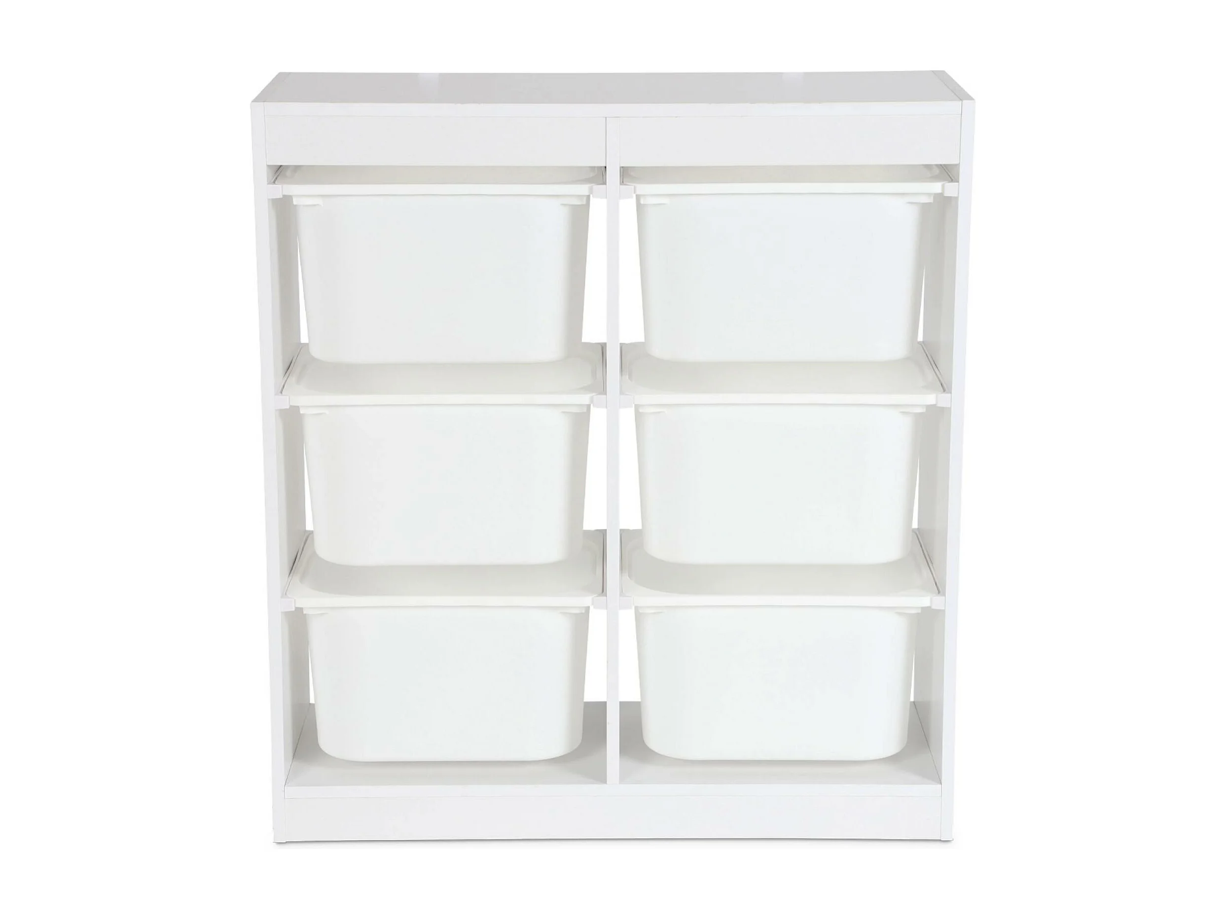 Meuble de rangement enfant. blanc. 6 bacs de rangement en plastique