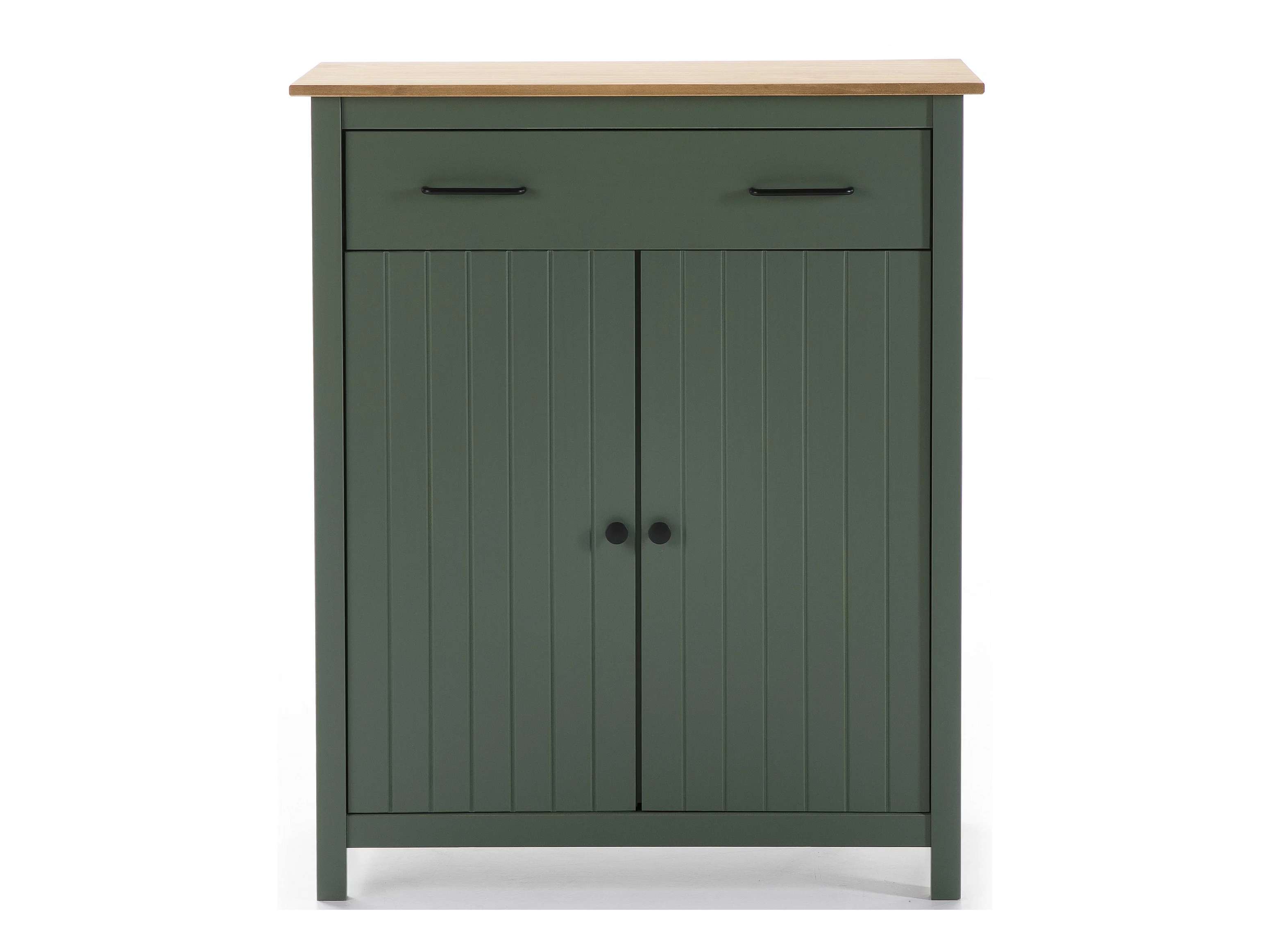 Meuble de rangement, meuble d'appoint en pin massif décor ciré chêne et vert - Longueur 90 x Profondeur 40 x Hauteur 110 cm