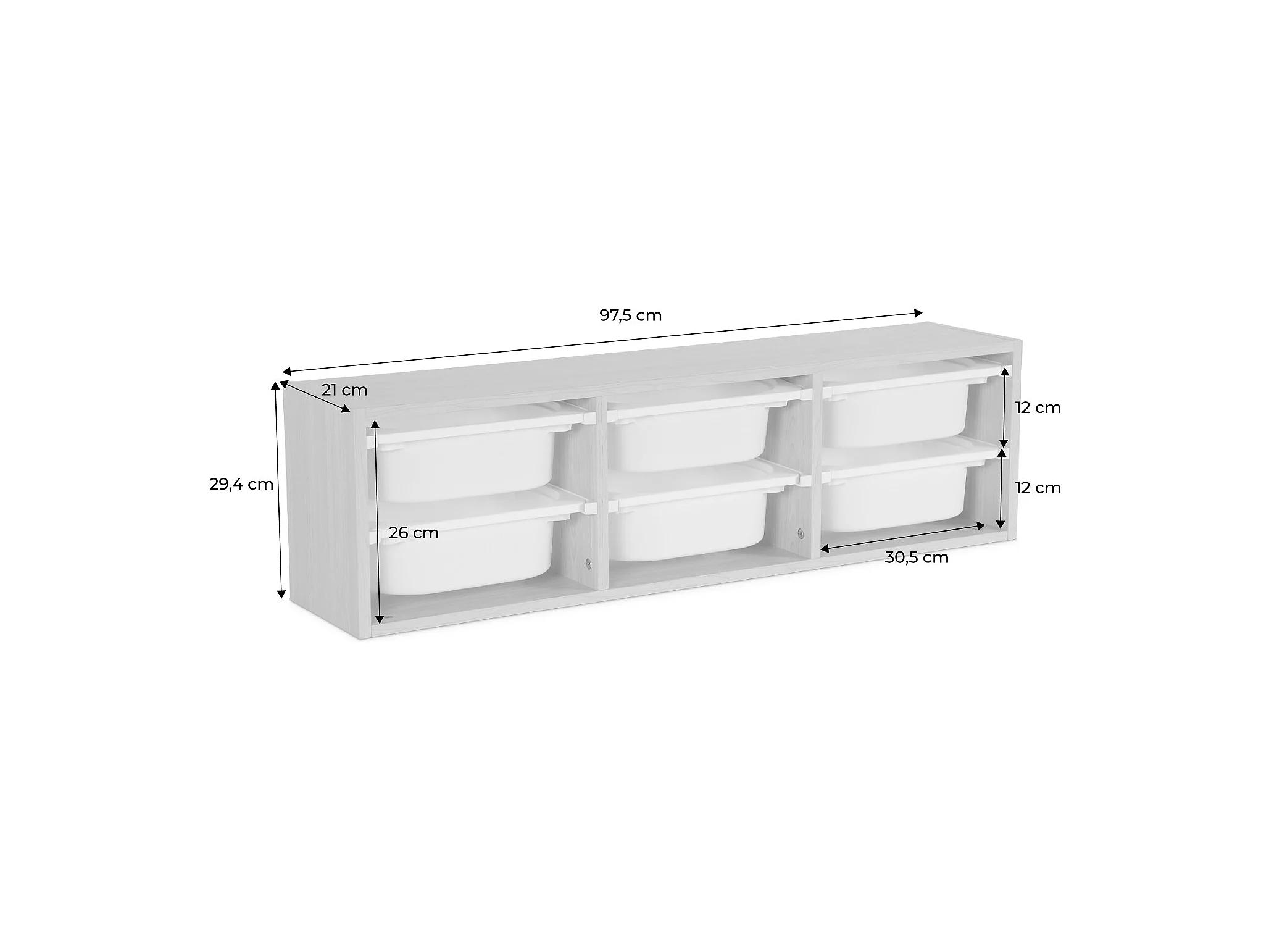 Meuble de rangement naturel pour enfant. 6 bacs en plastique vert olive taupe - Sora