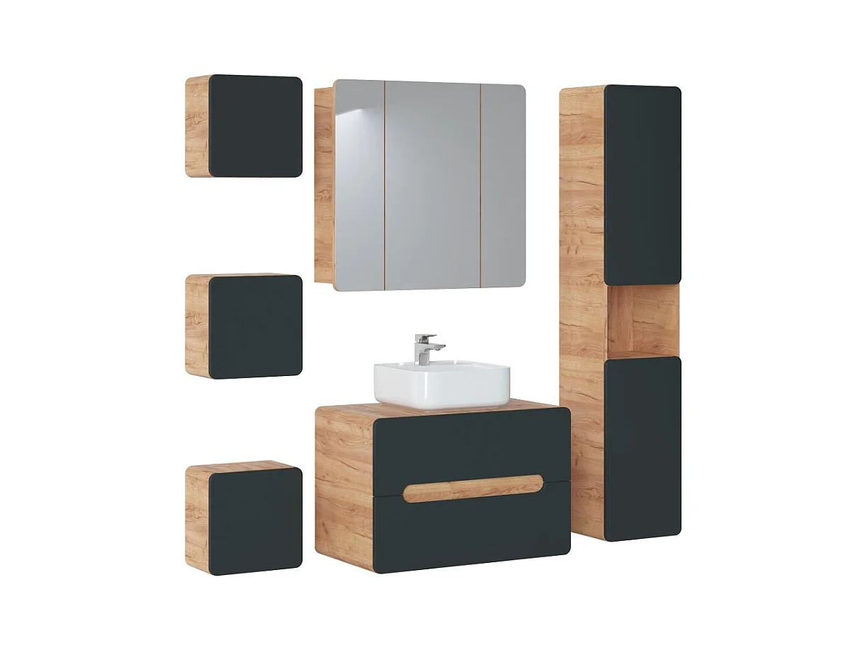Meuble de rangement salle de bain ERBANO – 1 porte – Coloris chêne clair et gris anthracite – H68 cm – À suspendre
