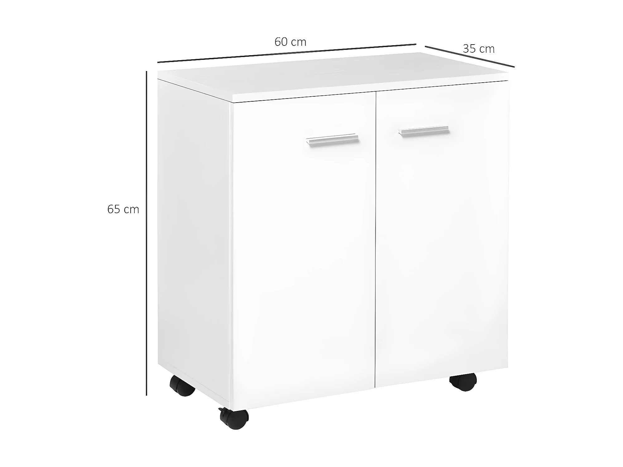 Support d'imprimante organiseur bureau caisson 2 portes avec étagère grand plateau panneaux particules blanc