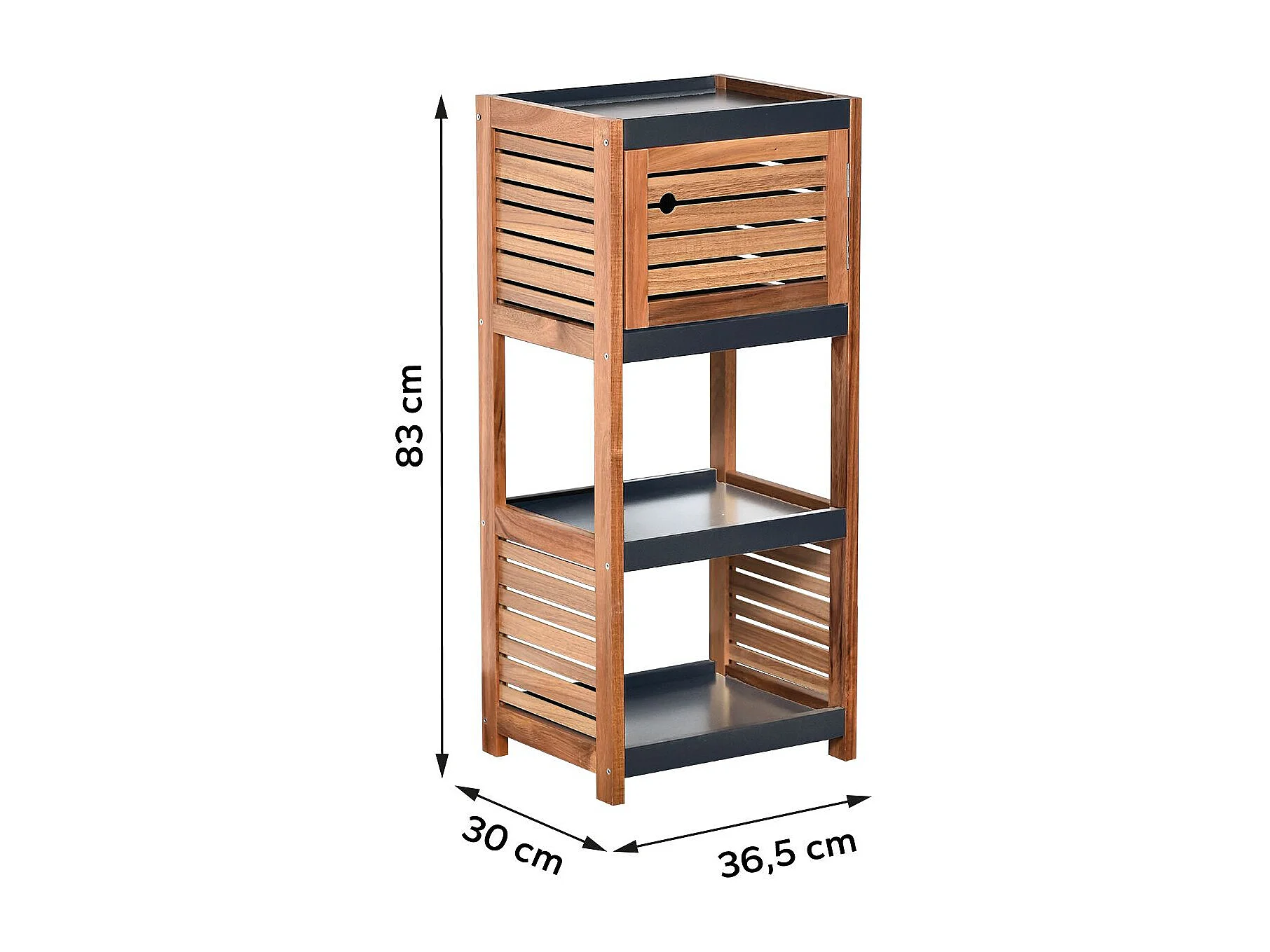 Meuble de rangement 1 Porte et 3 Étagères H 83 cm - Acacia