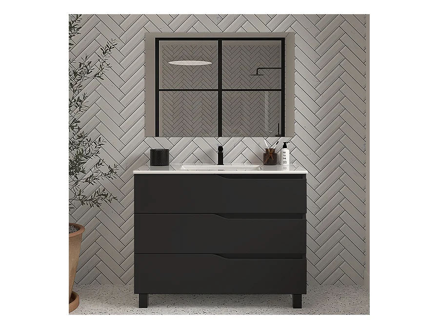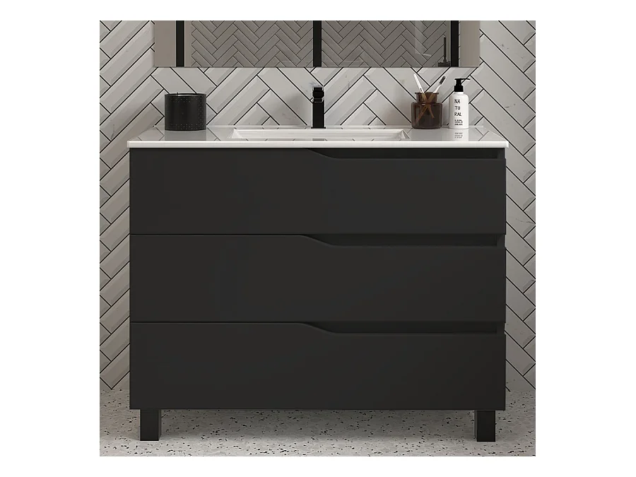 Meuble de salle de bain 100cm simple vasque - 3 tiroirs - noir - MATA