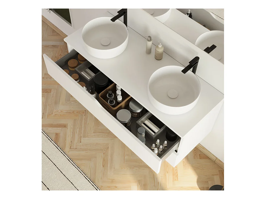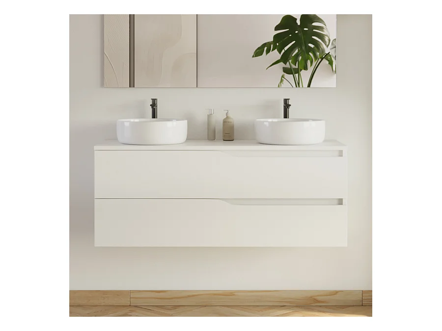 Meuble de salle de bain 120cm avec plateau et 2 vasques à poser Ares - 2 tiroirs - sans miroir - blanc - LUNA