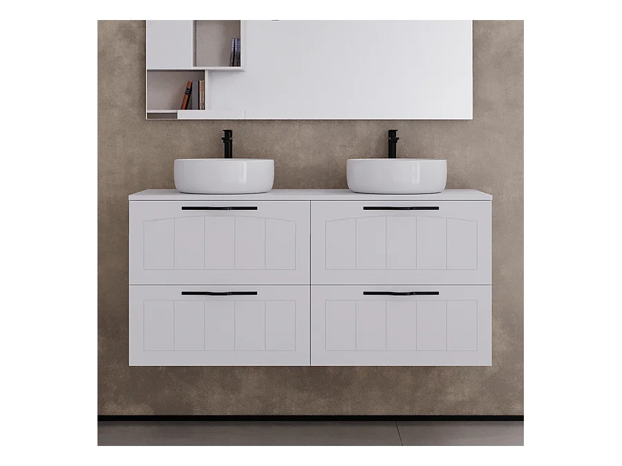 Meuble de salle de bain 120cm avec plateau et deux vasque à poser rondes - 4 tiroirs - sans miroir - blanc - PIA