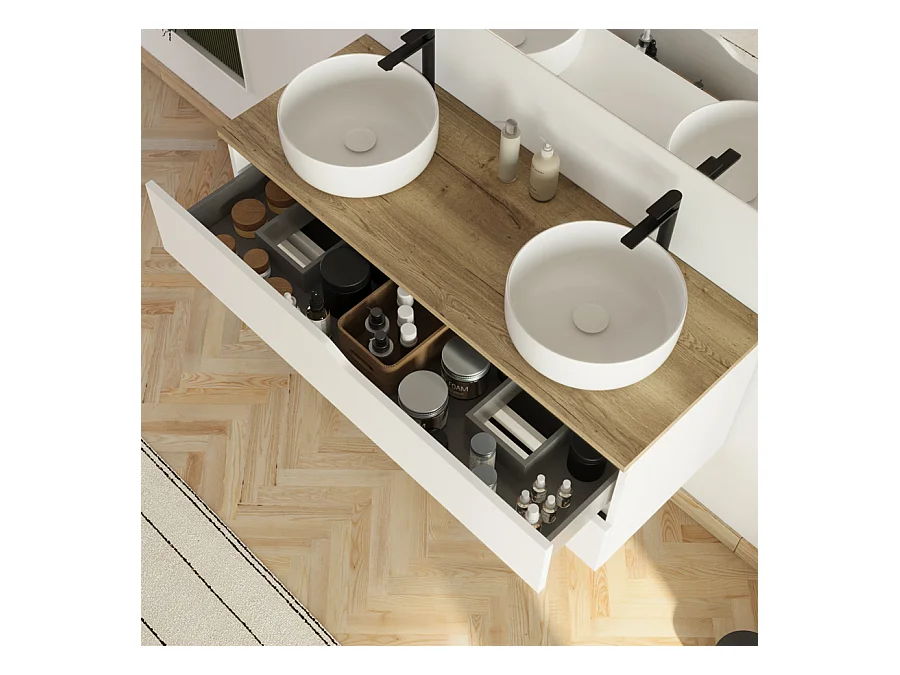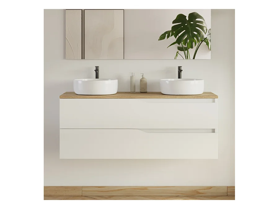 Meuble de salle de bain 120cm avec plateau miel et 2 vasques à poser Ares - 2 tiroirs - sans miroir - blanc - LUNA