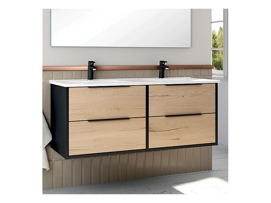 Meuble de salle de bain 120cm double vasque - 4 tiroirs - ALBA - noir/roble