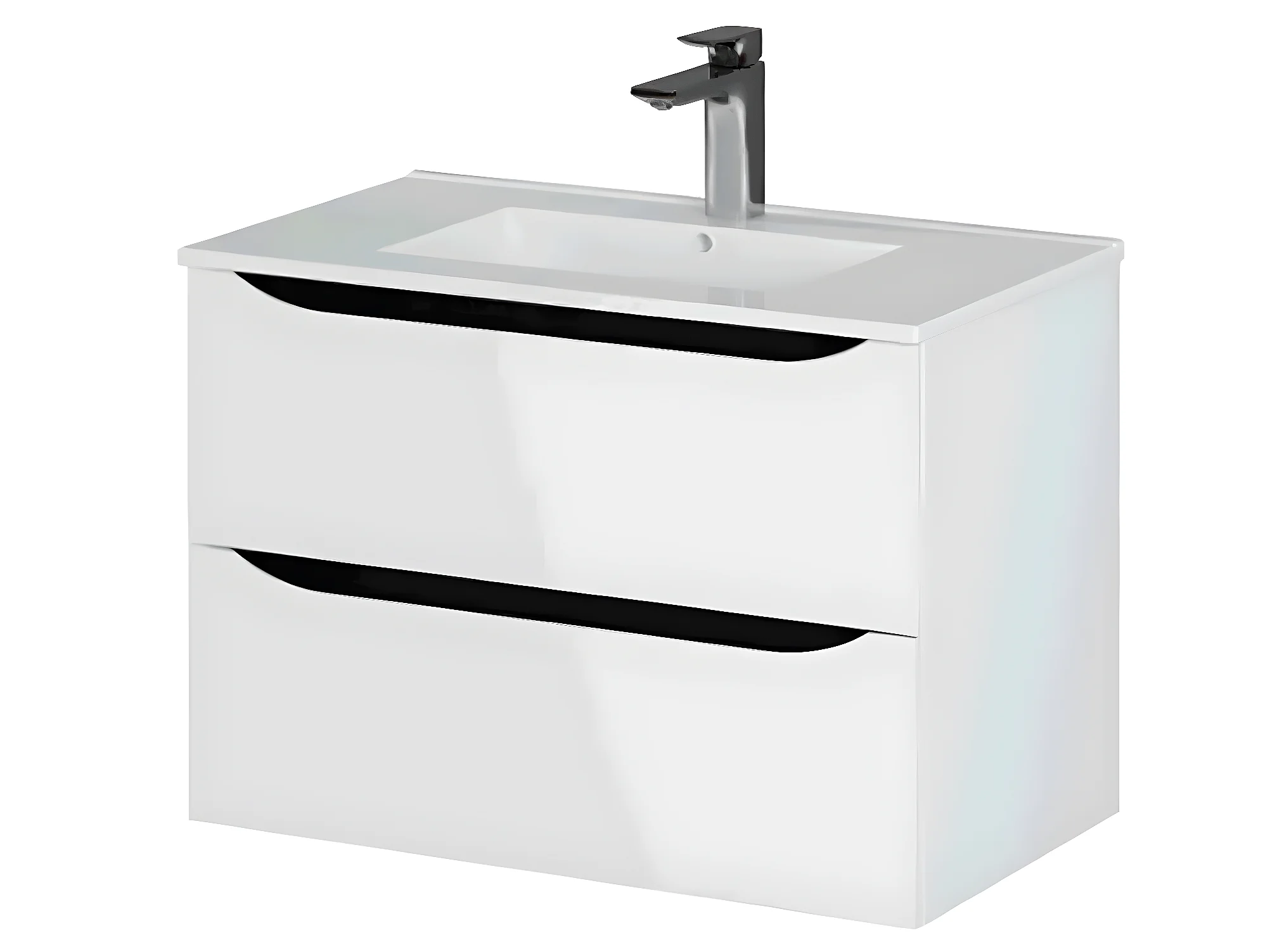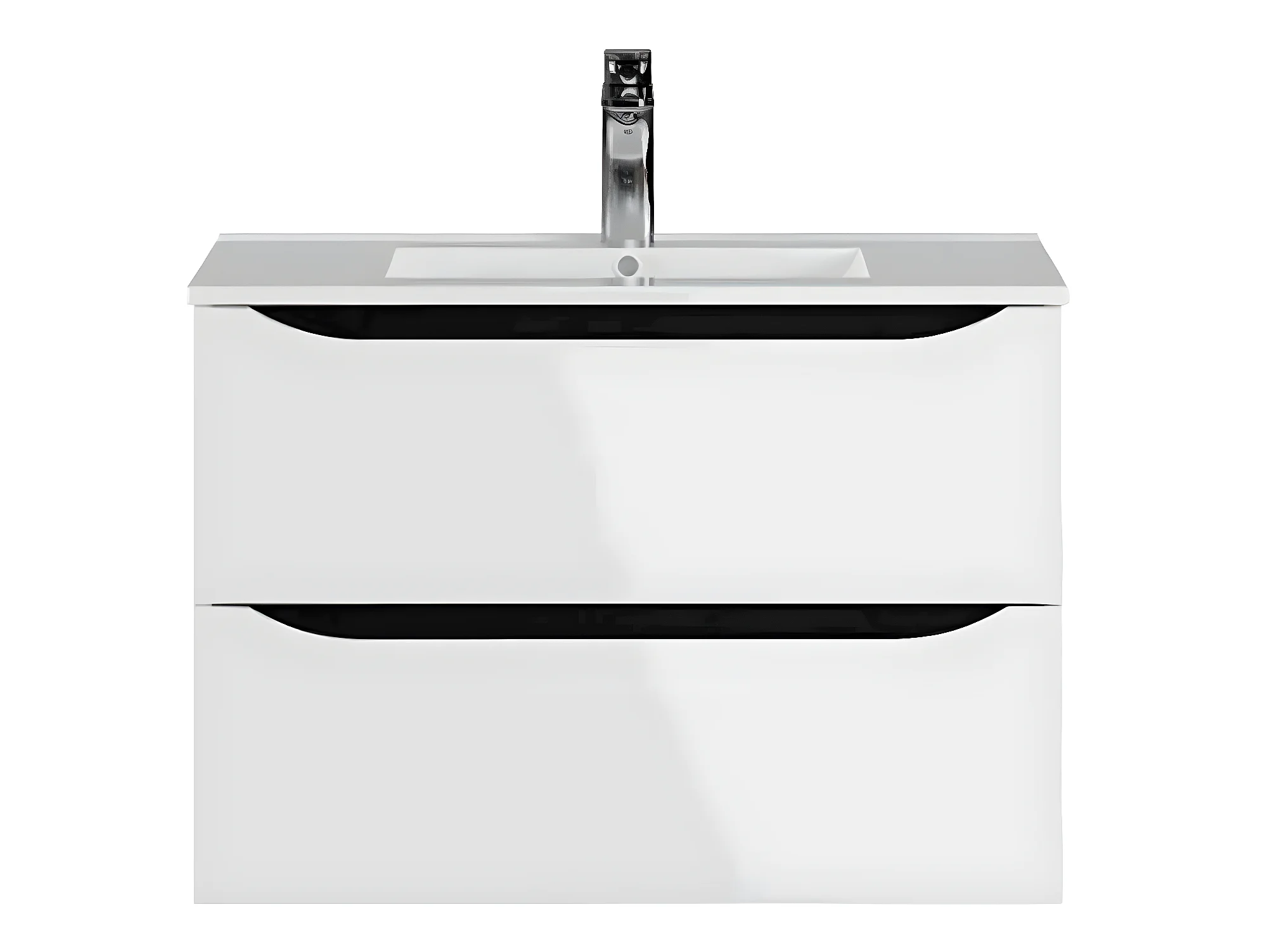 Meuble de salle de bain 2 tiroirs en mélamine coloris blanc brillant - Longueur 81 x profondeur 46 x Hauteur 57 cm