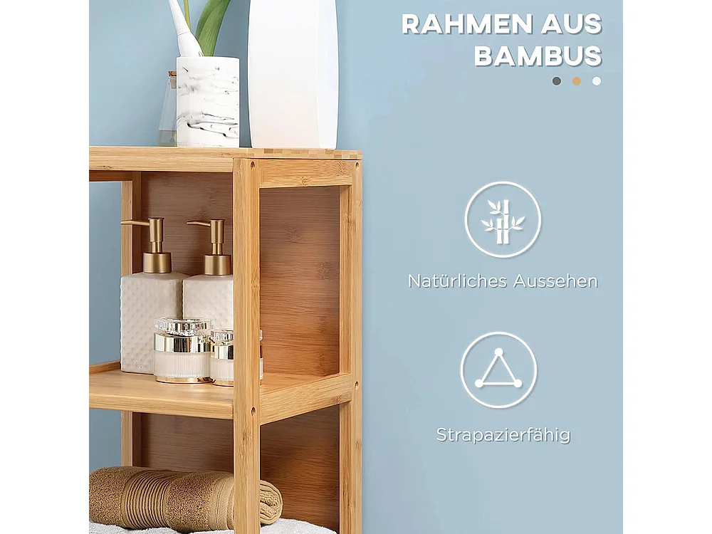 Étagère de salle de bain, 3 niveaux, 1 armoire, 38,5 cm x 33 cm x 170 cm, couleur naturelle.