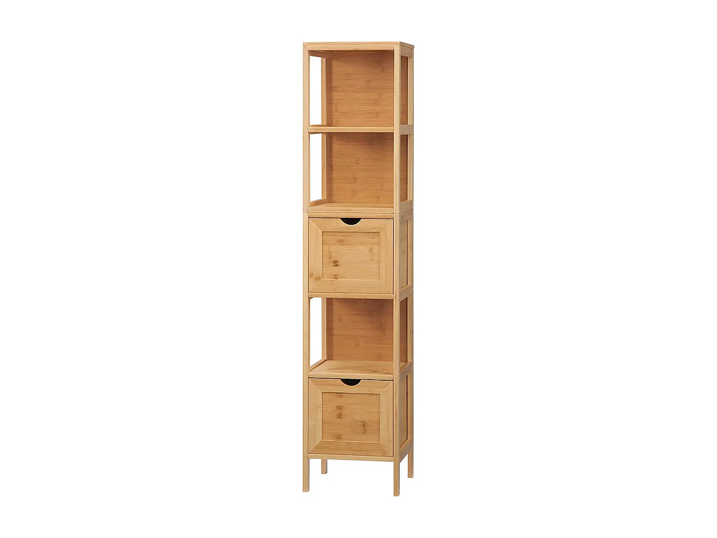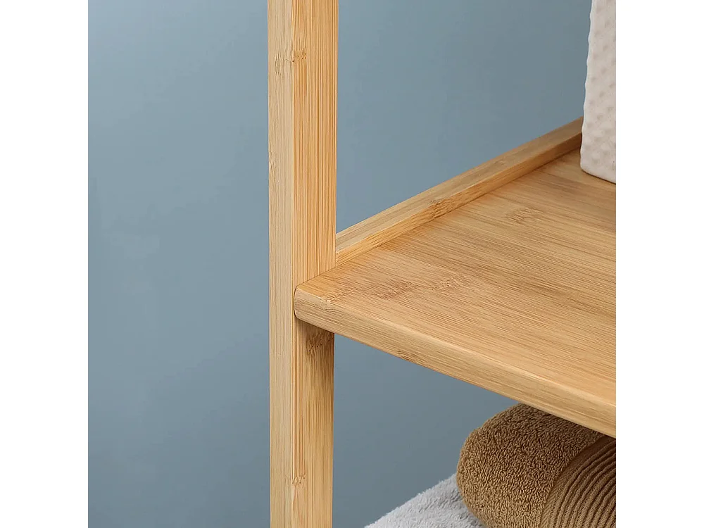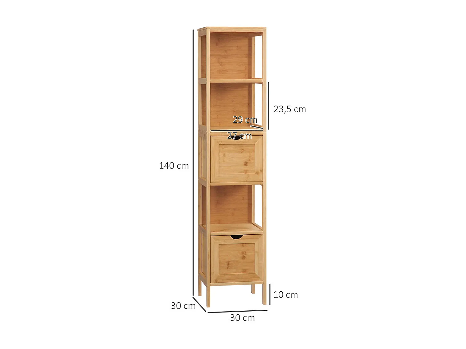Meuble de salle de bain, 3 étagères, 2 tiroirs, en bambou, 30 cm x 30 cm x 140 cm, couleur naturelle